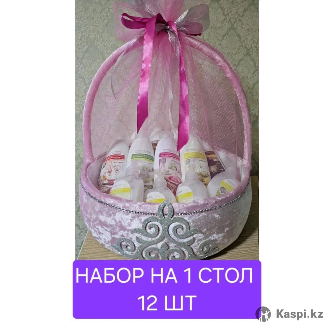 НАБОР НА 1 СТОЛ 12 ШТУК 9 800 ТЕНГЕ БЕЗ КОРЗИНЫ СОСТАВ НАБОРА: Средство для чистки духовок и плит 500 мл - 4 шт Средство для мытья посуды 500 мл - 4 шт Мыло для кухни, устраняющее запахи - 4 шт КОРЗИНА ОТДЕЛЬНО 3500 ТЕНГЕ