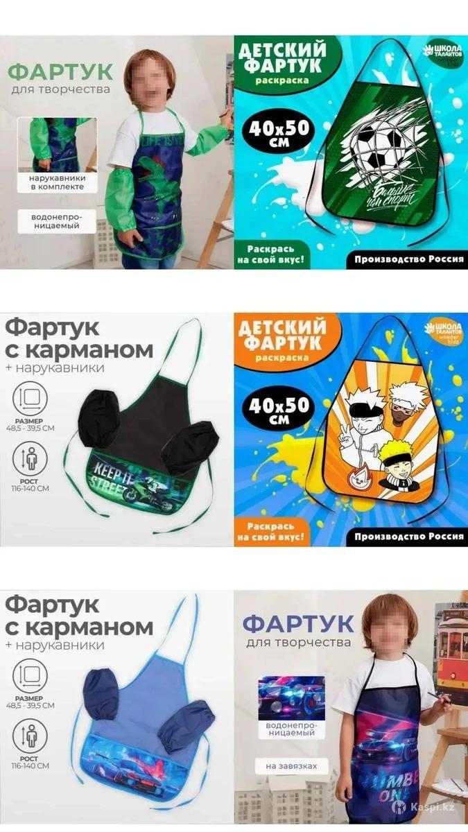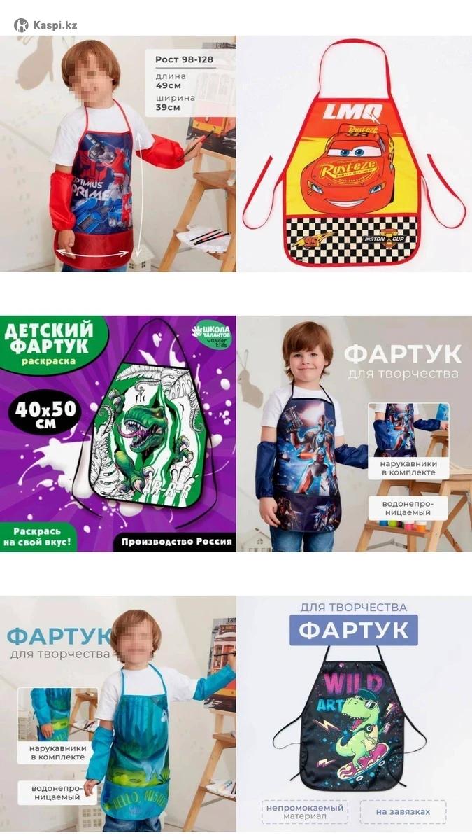 Фартуки детские с нарукавниками и без нарукавников Возраст: 3-8 лет Разнообразие расцветок Вас порадует И уроки труда для малышей будут занимательным и приятным занятием. На уроках труда дети должны соблюдать правила техники безопасности. Иметь спецодежду - обязательное условие для посещения уроков труда. Его необходимо иметь девочкам на уроке труда и мальчикам. Без фартука не обойтись в повседневной жизни детям и взрослым. Цены: 1800 - 4800 тг