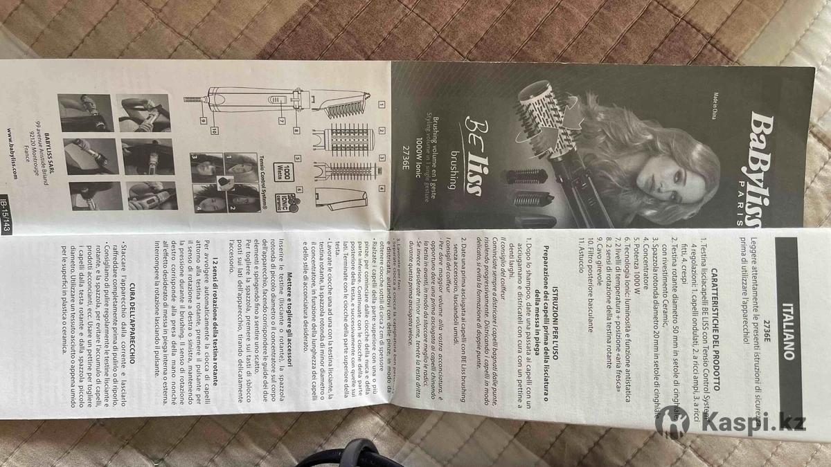 Фен фирмы бейбилис, оригинал, с 4-мя насадками. В хорошем состоянии, все работает, большая насадка с щеткой крутится при нажатии боковых кнопочек. Отдам за символическую цену 5000тг.