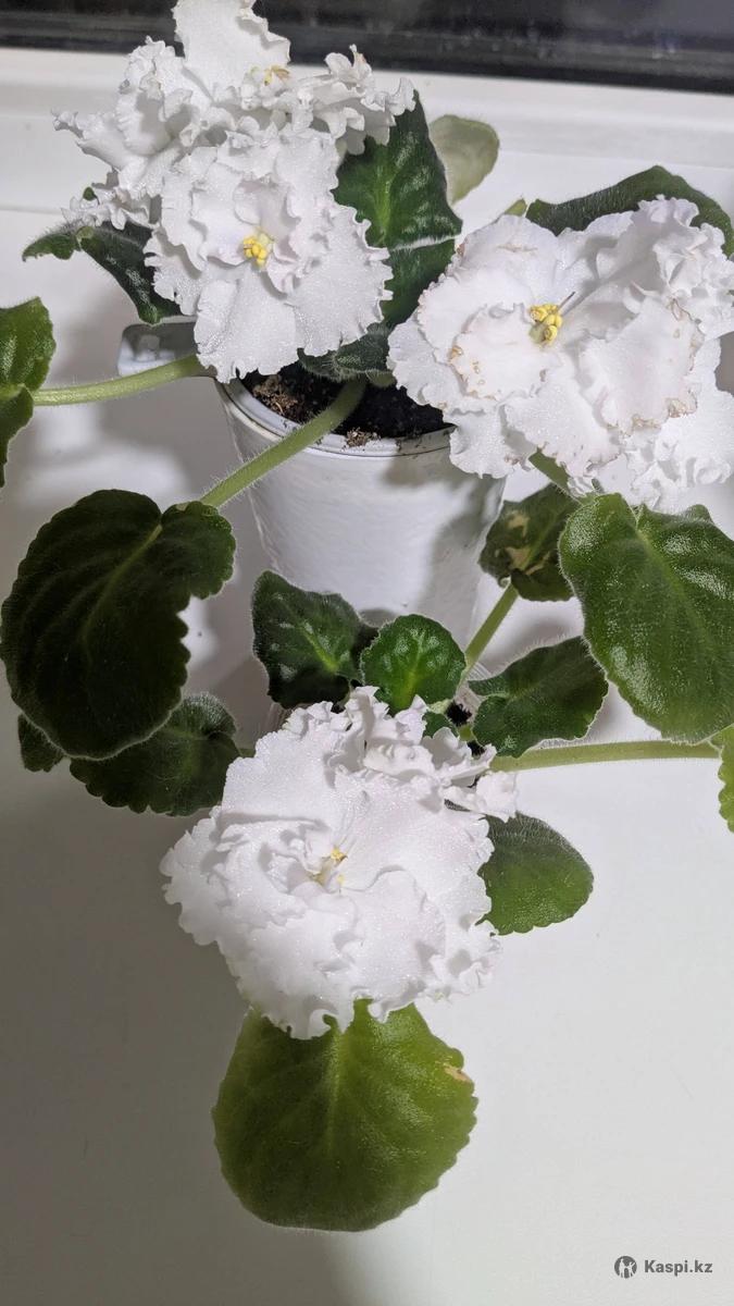 Сорт 2022г. Огромные безупречно белые цветы: очень крупные анютки с волнистыми краями лепестков. Обильный букет, быстро зацветает и часто цветет. Первое фото взято из Интернета - пример цветения взрослой розетки. Продается детка, проверенная по сорту, на фото 2 и 3. Забрать можно в районе Атакент или Цирка.