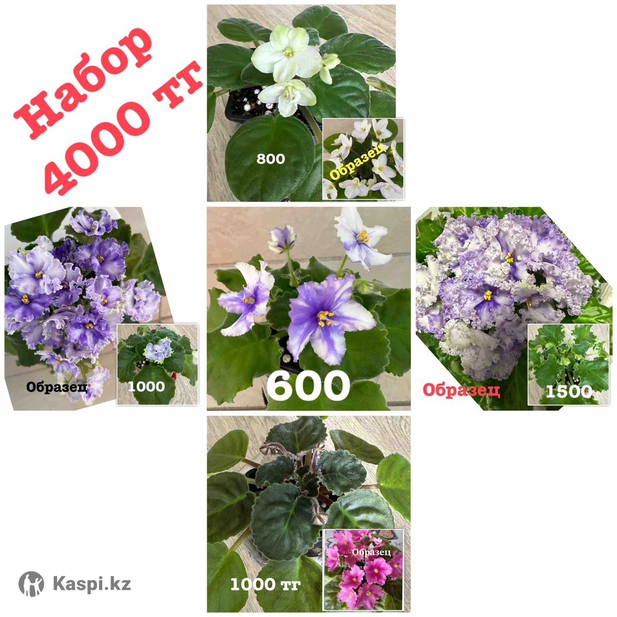 Предлагаю набор фиалок. В наборе 5 расцветок ( можно эти фиалки приобрести по отдельности,цены указаны на фото, в наборе выходит дешевле ), все с бутонами, некоторые уже начали цвести, ЦЕНА НАБОРА-4000 тг!!️ Район квазара ( Павлодар), рассмотрю доставку, если районы недалеко.