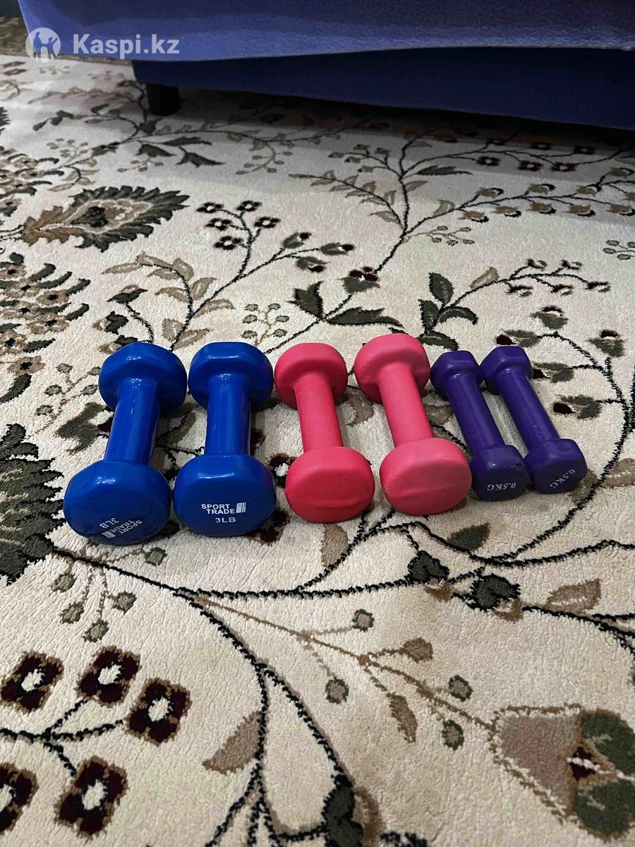 Фитнес гантели 3шт за 7000 тг. Синий-1,5 кг. Красный-1,5 кг. Фиолетовый-0,5 кг.