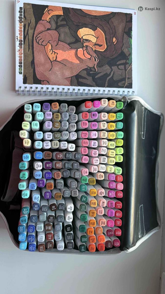 Новые фломастеры купила сегодня , в комплекте все есть. Раскрасила буквально одну страницу (показана на фото) и все. Они просто напросто не подошли для моей раскраски, а так рисуют хорошо. В наборе 168 штук покупала за 15к-17к, отдам за 10к.