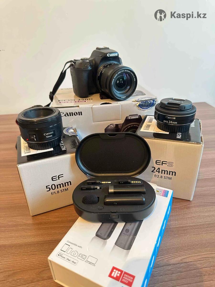 Фотоаппарат EOS 250d идеальная камера для блоггер и семейного контента Комплект Canon 250d Родной аккумулятор Зарядка +ремень Объектив 18-55мм, автофокус и стабилизация Объектив Canon EF 50mm Oбъектив Canon EFs 24mm Микрофон boya