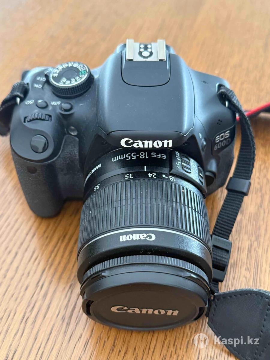 18-мегапиксельная зеркальная камера (APS-C CMOS) начального уровня с поворотным 3-дюймовым экраном (1,04 млн точек), процессором DIGIC 4 и записью Full HD видео. Она имеет 9-точечную автофокусировку, ISO 100–6400 (до 12800) и совместима с объективами EF/EF-S. Основные технические характеристики Canon EOS 600D: Матрица: 18.0 мегапикселей, CMOS, размер APS-C (\(22.3times 14.9\) мм). Максимальное разрешение фото: \(5184times 3456\) пикселей. Процессор: DIGIC 4. Дисплей: Поворотный ЖК-экран 3.0" (7.7 см), разрешение 1 040 000 точек. Видеосъемка: Full HD (1920x1080), 30/25/24 кадров/сек.ISO: 100–6400, расширяется до 12800. Автофокус: 9-точечная система (включая центральный крестовой датчик). Выдержка: \(1/4000\) — 30 сек. Серийная съемка: 3.7 кадра/сек. Барабан режимов: Включает творческие режимы (Av, Tv, M) и автоматические, включая Интеллектуальный сценарный режим. Вспышка: Встроенная, ведущее число 13. Память: SD, SDHC, SDXC.Аккумулятор: LP-E8.