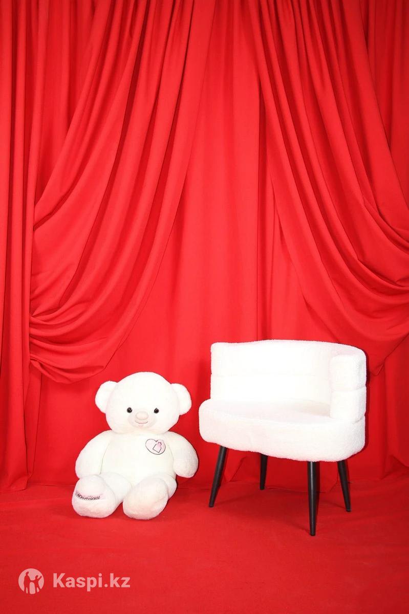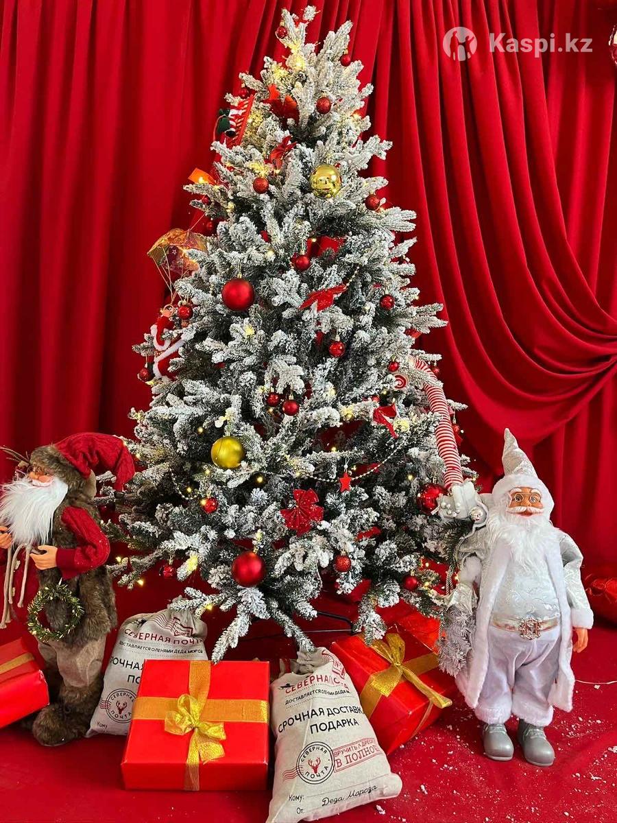 Готовый 2 фотозона Ёлка/Елка 1,8м ойынщыктарымен Жанында еки шагын аяз атасы и подарочкаларымен Грляндасы + камень + лампалар + подарка стильде дорбалармен +Кызыл перде и +кызыл коврикпен + ак конжыкпен + ак кресло