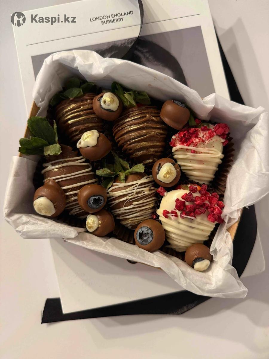 В шоколаде : В Бельгийском молочном, белом шоколаде Клубника, голубика, бананы, финики Так же фигурные шоколадные конфеты и плитки из шоколада с начинкой Красивое оформление 😍