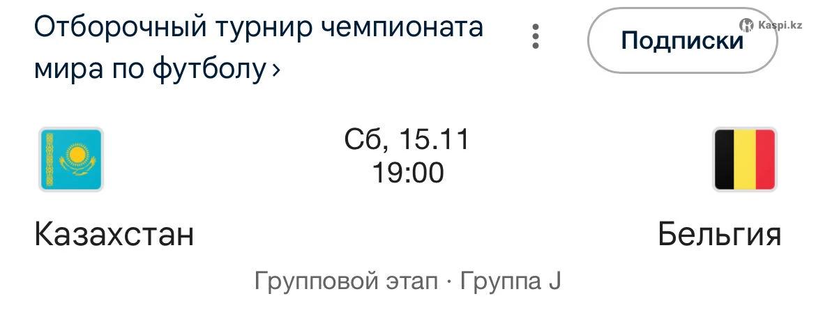 Билет на футбол Казахстан против Бельгия