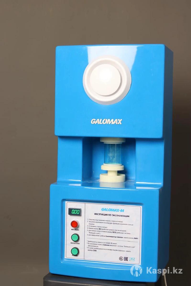 Электропитание от сети переменного тока, частотой 50 ± 0.5Гц, напряжением 220В. Электрическая мощность, потребляемая аппаратом, не более 50 Вт. Производительность по объему подаваемого воздуха составляет не менее 120 метров кубических в час. Коэффициент шума не более 35 дБ. Эксплуатация установки в закрытых помещениях при температуре от +15 до + 25°С при влажности не выше 65%. Предназначен для помещений объемом до 120 м3. Аппарат создает в помещении за время не более 30 мин. с начала работы концентрацию соляного аэрозоля от 0.5 до 2 мг/'м3. При этом дисперсный состав аэрозоля должен состоять не менее чем на 70% из частиц от 1 до 10 м к м. Галогенератор выполнен в виде настенного шкафа. Поток воздуха от воздуходувки по резиновому шлангу нагнетается к сетчатом; дну аэрозольного стакана, проходя через стакан, в «Кипящем слое» насыщается солью «Аэросоль» и по воздуховоду подается в Соляную пещеру Соляная шахта, соляная комната, соляная пещера, соляная камера, сольевой шахта, сольевая комната, галокамера, галотерапия, тұзды бөлме, тұзды шахта, тұзды пещера,