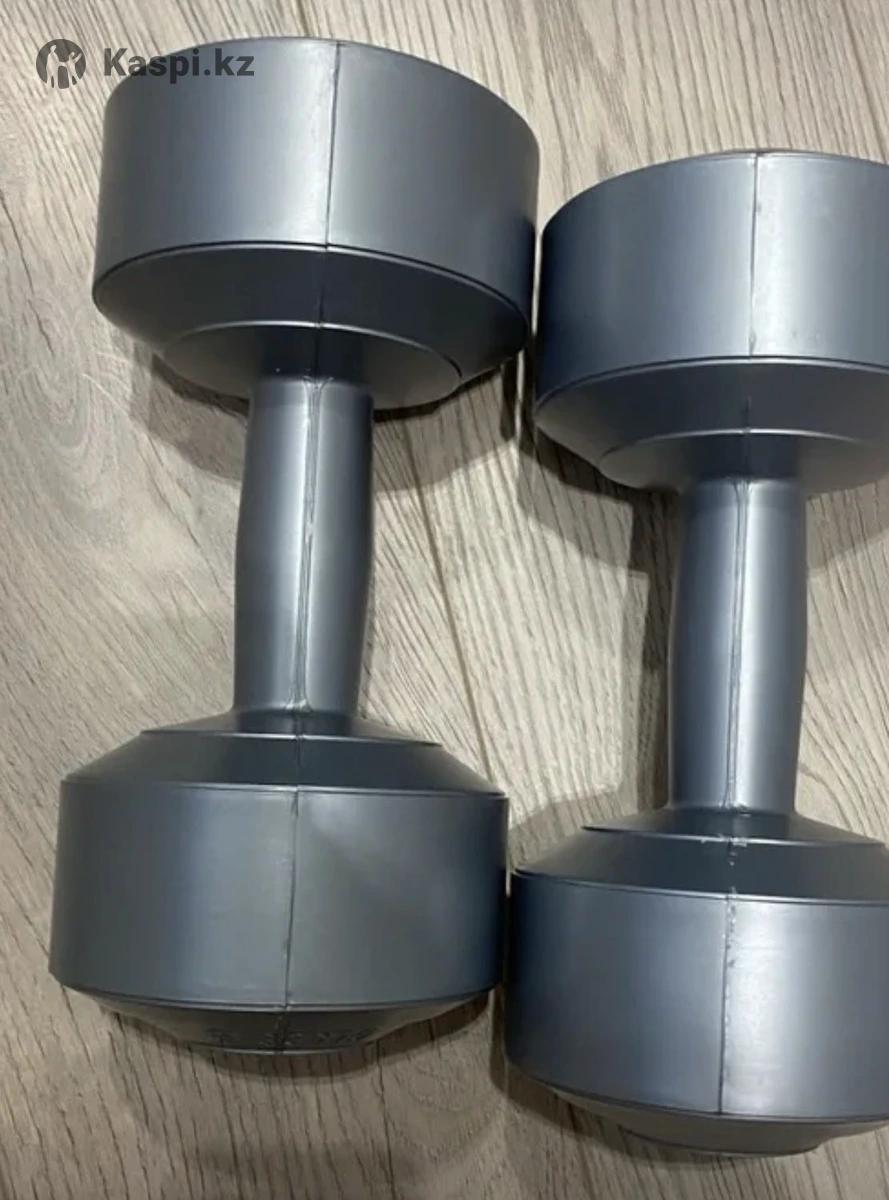Гантели 4 кг 2 шт. Общий вес 8 кг. Виниловые . Пластик . Цвет светло серый, в идеальном рабочем состоянии.