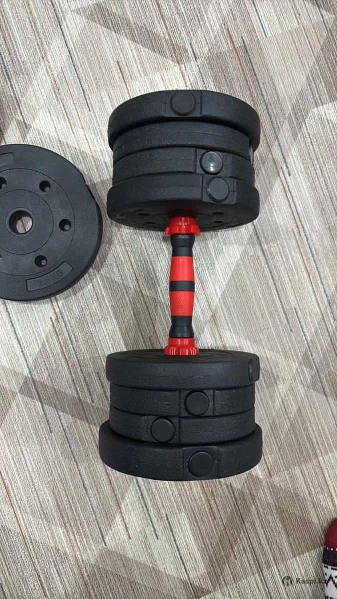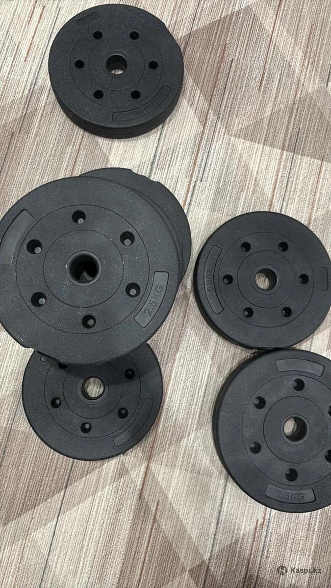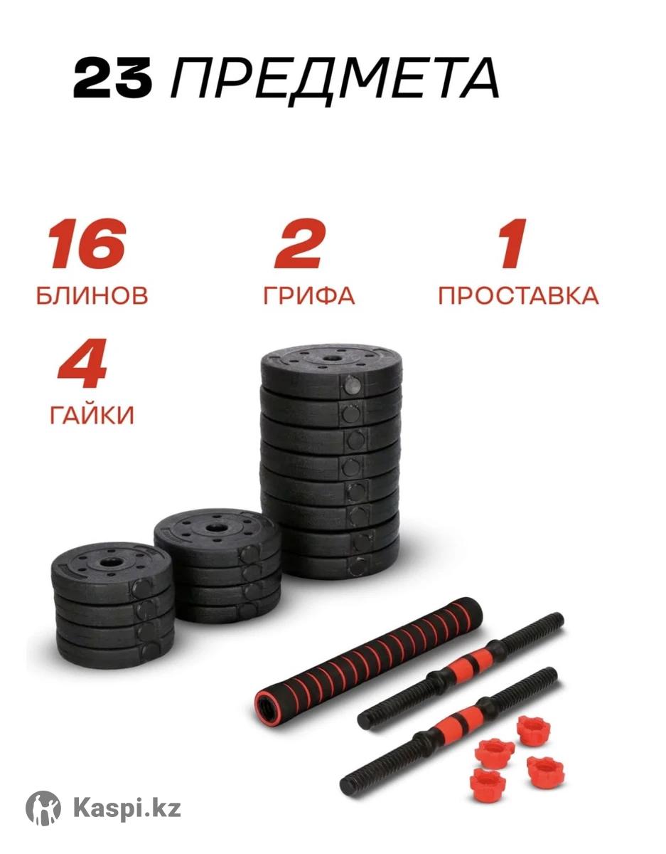 Гантели 23 предмета: блинов 16; 2 грифа; 1 проставка; 4 гайки. Брали за 15.000