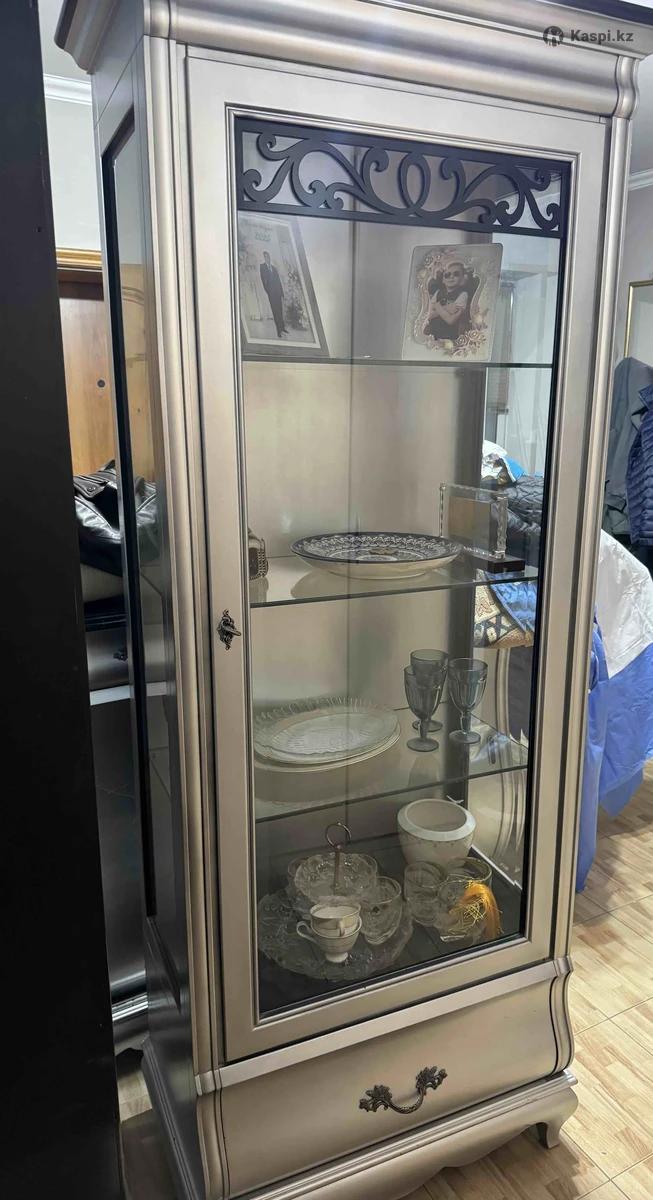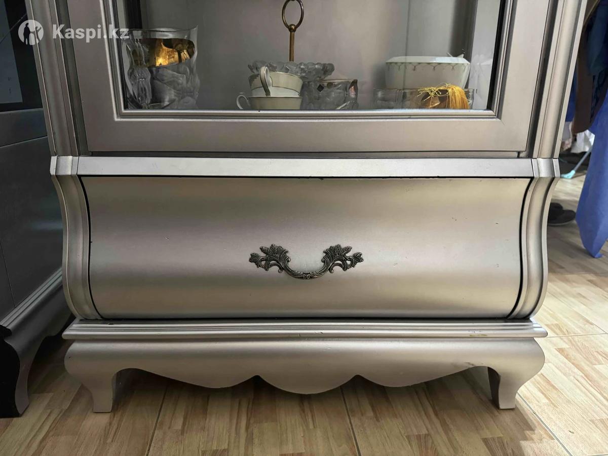 Продаю красивый классический набор мебели для гостиной в цвете шампань с темной патиной. В комплект входит: большой буфет и две витрины. Мебель выполнена из качественных материалов - массив дуба, шпон дуба, стекло с фацетом. • Стиль: классика • Цвет: Светло-серебристый перламутр с темной патиной. имеет холодный металлический отлив, немного серебристый, но с благородным "антик" эффектом за счет патины • Материал: тяжелый массив дуба, шпон дуба, стекло • Фурнитура качественная • Витрины стеклянные и с изящным растительным узором на стекле • Состояние: Общее состояние отличное - все работает, ящики и дверцы открываются плавно. • На одной витрине сбоку трещина на стекле (незаметна и не влияет на внешний вид). • Вторая витрина в идеальном состоянии. - Буфет имеет царапины от ручки на поверхности — можно легко закрасить или перекрасить при желании. Приложила фото изъянов. Мебель была куплена за дорого и выглядит очень дорого и элегантно, идеально подойдет для классического интерьера. Также прикрепила очень похожие варианты и цену в рублях ориентировочную. новая мебель подобного уровня стоит свыше 2 000 000 тенге Причина продажи: делаем ремонт и меняем стиль интерьера.