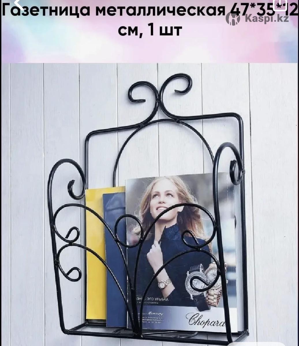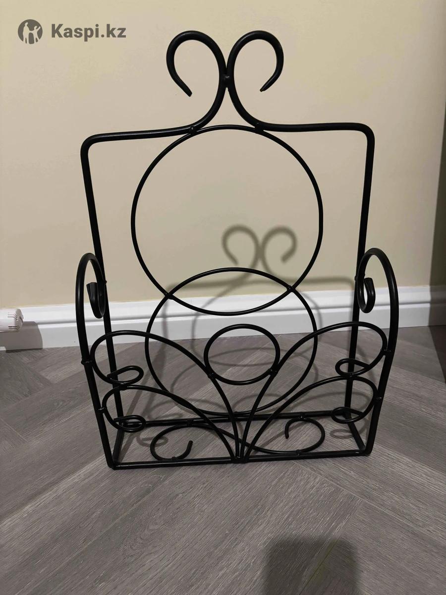 Газетница органайзер новая металлическая кованая черного цвета, размер см, крепкая, в меру тяжеленькая. Можно использовать и в других целях, хорошо сочетается в интерьере. Продажа 12000 тенге.