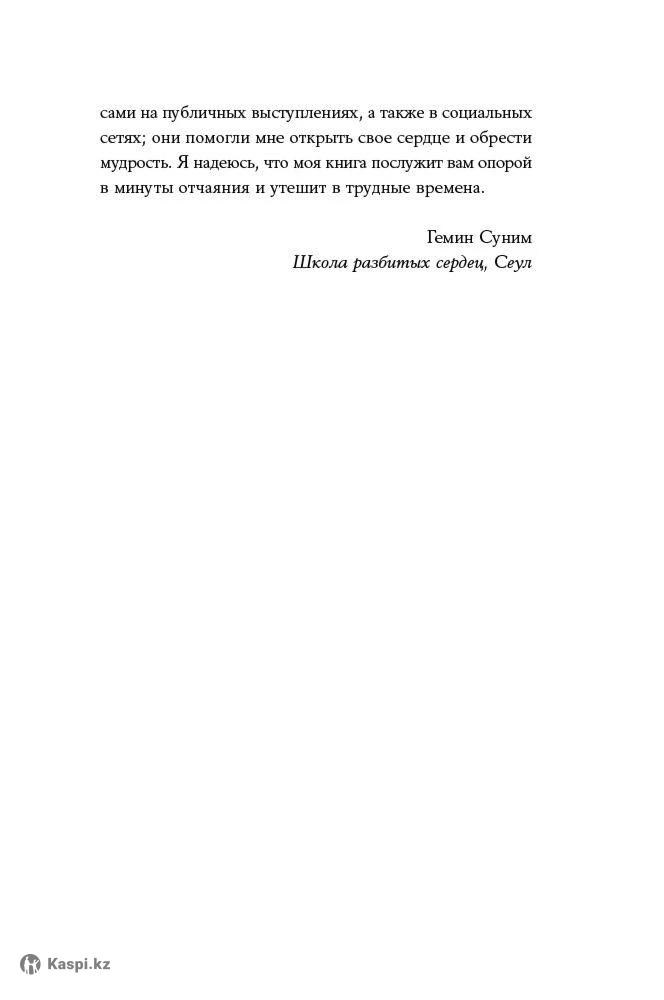 О чем Принимать других сложно, но жить в гармонии с собой еще труднее. Ошибки, о которых мы жалеем, конфликты, предубеждения, чувство вины, страхи и нелюбовь — причина всех наших бед зачастую кроется в неприятии себя. Как найти баланс, полюбить себя и начать спокойно относиться к чужим несовершенствам? Буддийский монах Гемин Суним, чье имя переводится как «стихийная мудрость», щедро делится с нами открытиями, к которым он пришел за время своего духовного пути. Книга деликатно и легко отвечает на очень сложные вопросы. Почему постоянное желание быть хорошим приводит к депрессии? В чем причина тревожности и трудоголизма? Как отношения с отцом в детстве влияют на нашу взрослую жизнь? Как пережить обиду и научиться прощать? Гемин Суним поможет вам заново открыть себя и научит жить в ладу с другими людьми и миром в целом. От автора Эта книга — итог моих размышлений над тем, как научиться относиться к миру и себе с состраданием. Моими вдохновителями стали все те, кто делился со мной своими историями и обращался ко мне с вопросами на публичных выступлениях, а также в социальных сетях; они помогли мне открыть свое сердце и обрести мудрость. Я надеюсь, что моя книга послужит вам опорой в минуты отчаяния и утешит в трудные времена. Зачем читать Если вы чувствуете постоянное недовольство собой, вам кажется, что вы не достаточно хороши в своем деле, не заслуживаете любви — эта книга для вас. Она поможет примириться с собой и понять поступки других. Для кого Эта книга — источник вдохновения для всех, кто стремится жить в гармонии с собои и всем миром. Количество страниц: 272 Размер: 145х215 мм