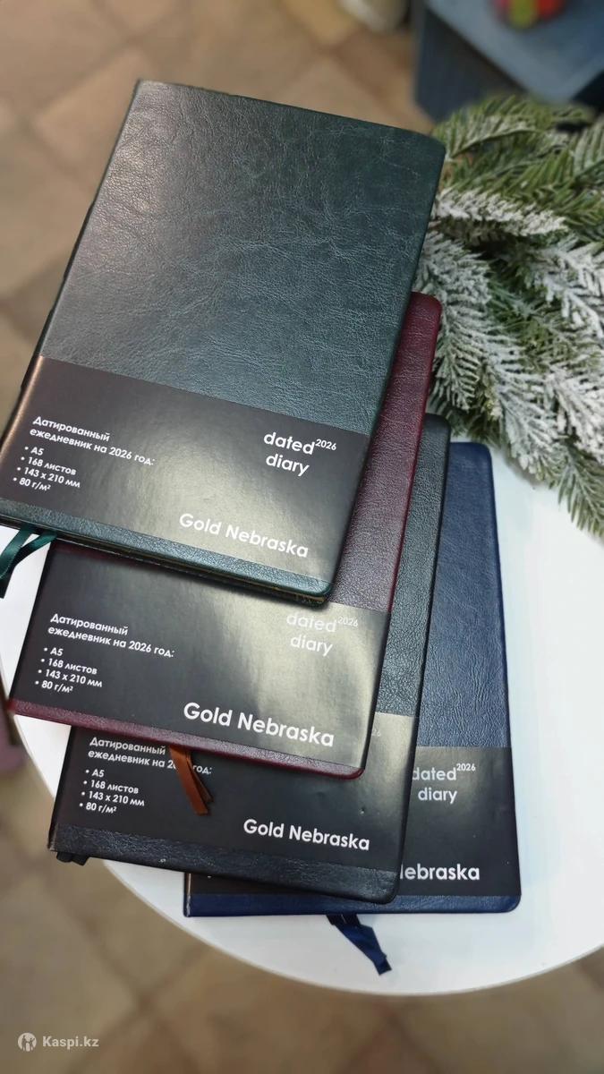Ежедневник 2026 датированный Четыре цвета, экокожа Золотой и серебряный срез страниц На каждой странице календарь текущего месяца, число и день недели Перфорация на углах, углы закругленные Две закладки лясы