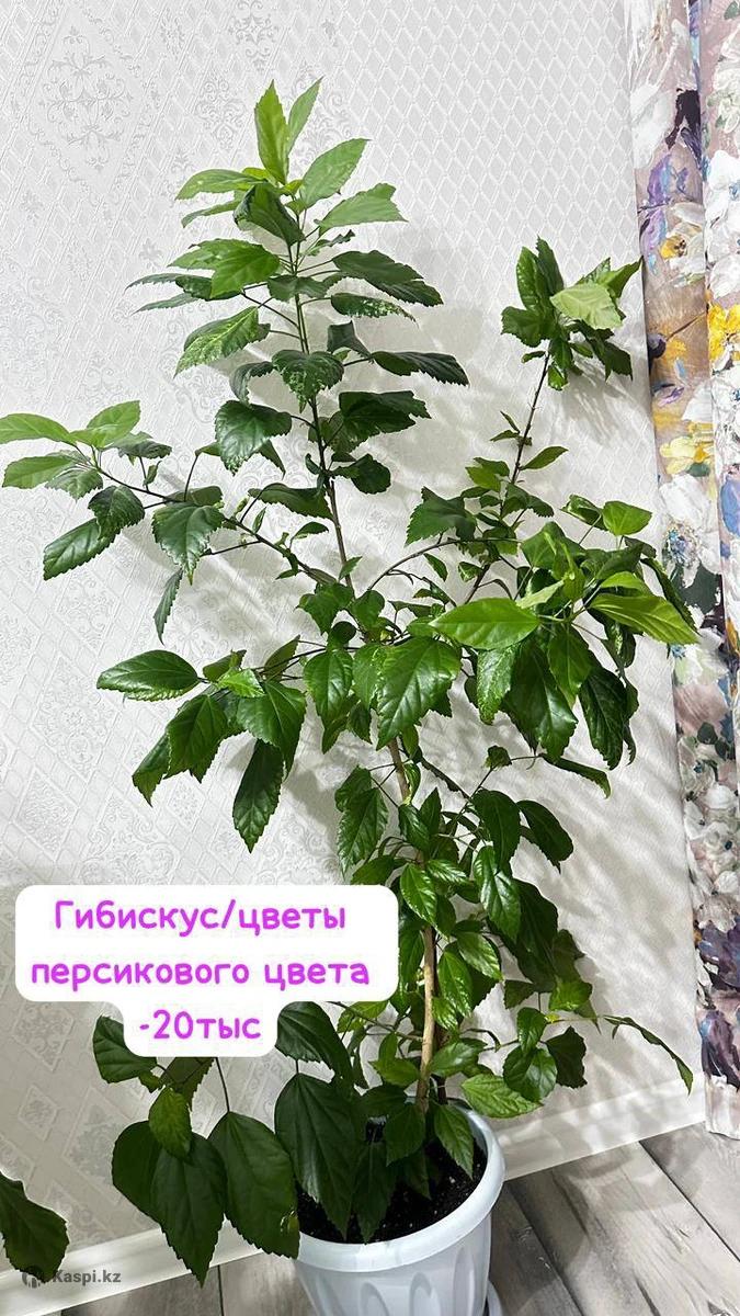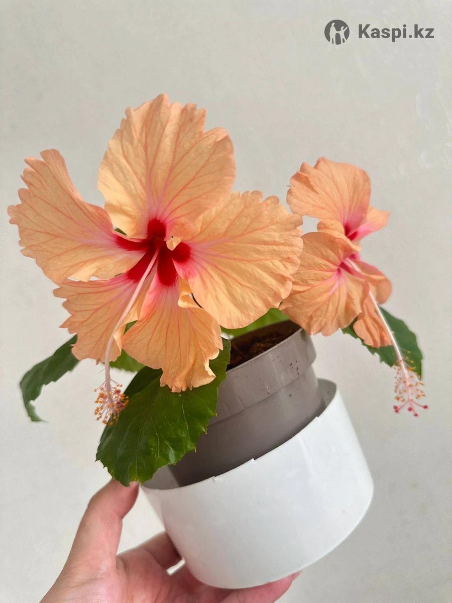 гибискус цветет цветами персикового и красного цвета,высотой 1.70