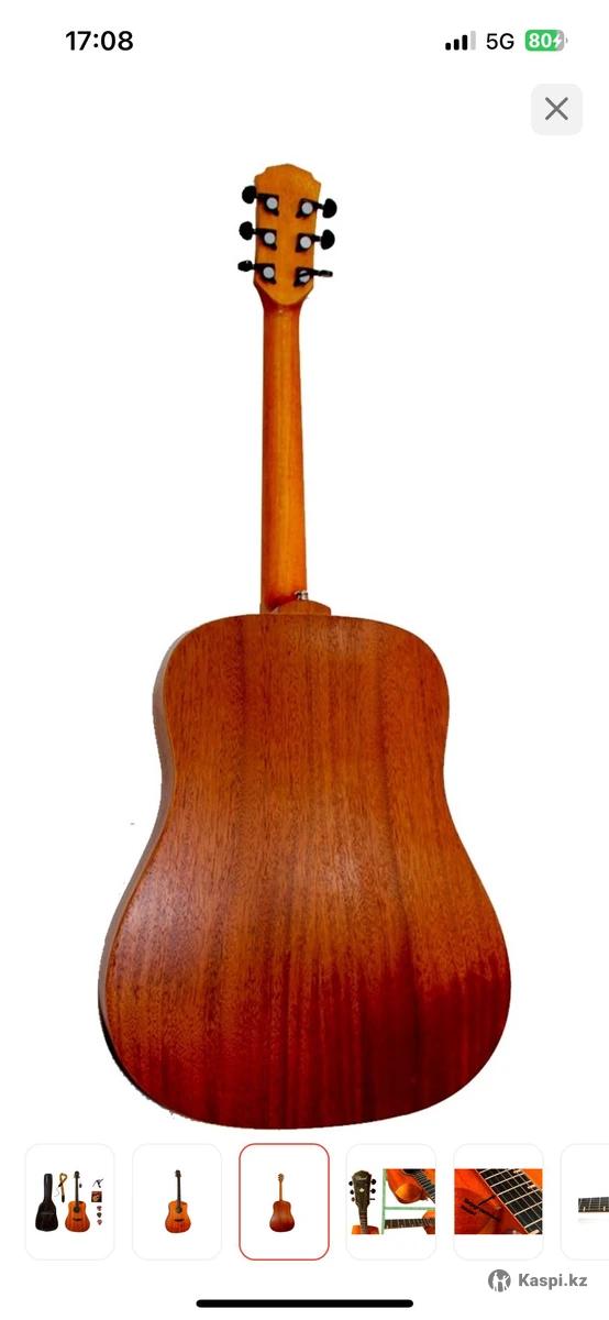 Акустическая гитара в комплектации с аксессуарами. Размер 41 Dreadnought, сорт дерева орех, гриф красное дерево, закругленные торцы ладов, анкер, низкая посадка струн, ровный гриф, накладка и бридж из черного дерева. Яркое, отличное звучание, глубокий тембр, красивый дизайн. Хорошее качество сборки. Чехол прилагается. Реальному покупателю минимальный торг есть. Обмен не интересует!