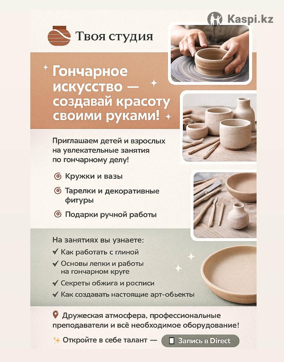 🌟 ATYRAU_ART2006 — студия творчества для детей и взрослых! Откройте мир искусства вместе с нами! 🎨 Мы обучаем: — Рисованию с нуля — Декоративно-прикладному искусству — Лепке и гончарному искусству — Художественным техникам для любого уровня ✨ Поченьу выбирают нас? — Индивидуальный подход — Теплая творческая атмосфера — Профессиональные педагоги — Быстрые результаты уже с первых занятий 📸 Наш Instagram: 📍 Атырау Запись !