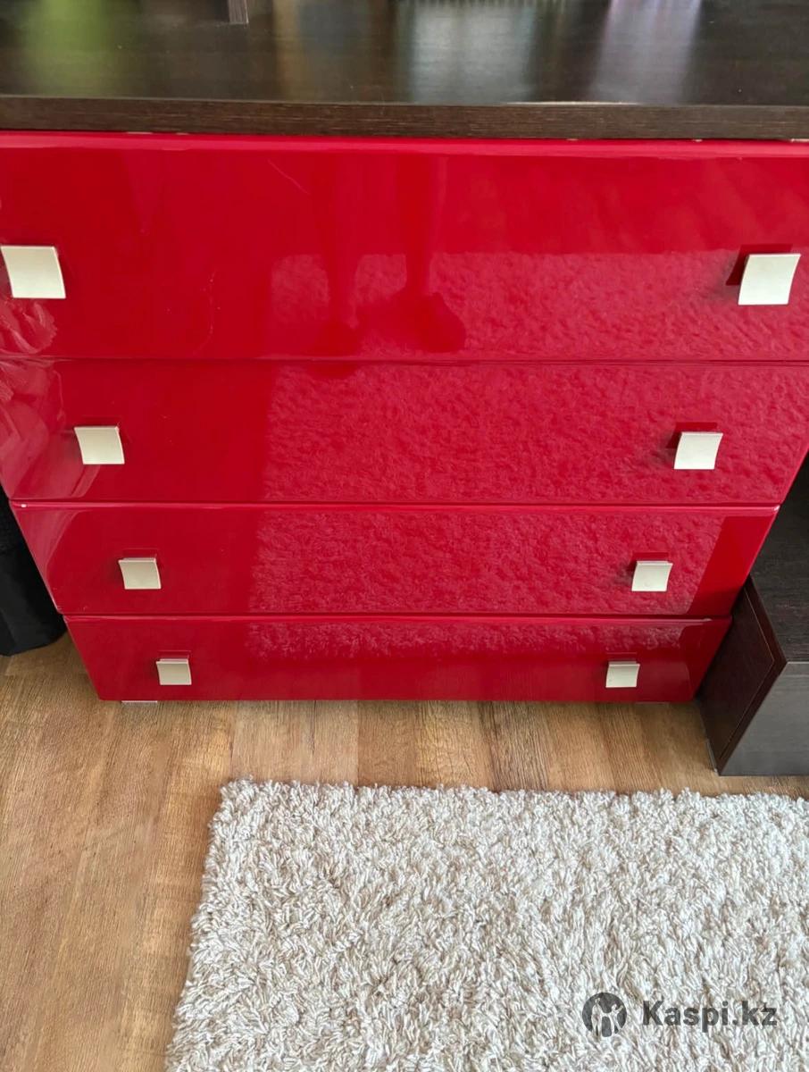 Продается большая модульная стенка для гостиной. Цвет — темный венге с глянцевыми красными фасадами, смотрится стильно и современно. Подходит для размещения телевизора, техники, книг и декора. Много закрытых и открытых секций, вместительные выдвижные ящики. Состояние хорошее, использовалась аккуратно. Продается в связи с обновлением мебели. Город Алматы Бостандыкский район Только самовывоз