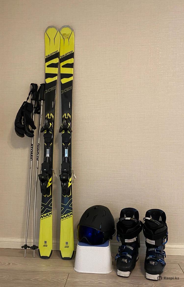 Горные лыжи с палками,перчатками, ботинки(43)размер и шлем. Все позиции в очень хорошем состоянии.