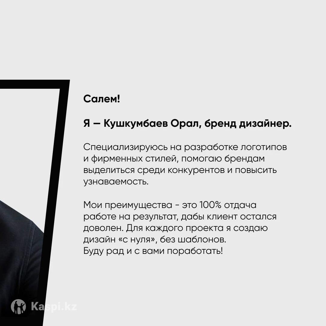Я – Кушкумбаев Орал, бренд дизайнер. В сфере более 3-х лет. - логотипы - фирменный стиль - оформление соцсетей - креативы для таргета Работаю в: Adobe Photoshop, Illustrator, After Effects, Figma, CorelDraw В Инстаграм: Принимаю заказы. 24/7 на связи.