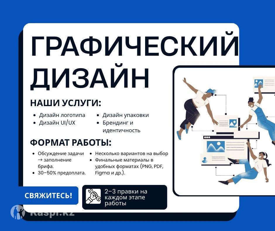 Хотите, чтобы ваш проект выделялся и выглядел профессионально? Я помогаю создавать визуалы, которые привлекают внимание, продают и запоминаются. 📌 Что я делаю: — Логотипы (от 15 000 тг) — UI/UX-дизайн сайтов и приложений (от 30 000 тг) — Дизайн упаковки (от 20 000 тг) — Брендинг и фирменный стиль (от 35 000 тг) ✨ Каждый проект выполняется в уникальном стиле, под ваши задачи и аудиторию. ⸻ 📌 Как проходит работа: 1.Обсуждаем задачу → заполняем короткий бриф. 2.Вносите предоплату 30–50% для старта. 3.Я предлагаю несколько вариантов на выбор. 4.На каждом этапе — 2–3 бесплатные правки. 5.Получаете финальные материалы в удобных форматах (PNG, PDF, SVG, Figma и др.).