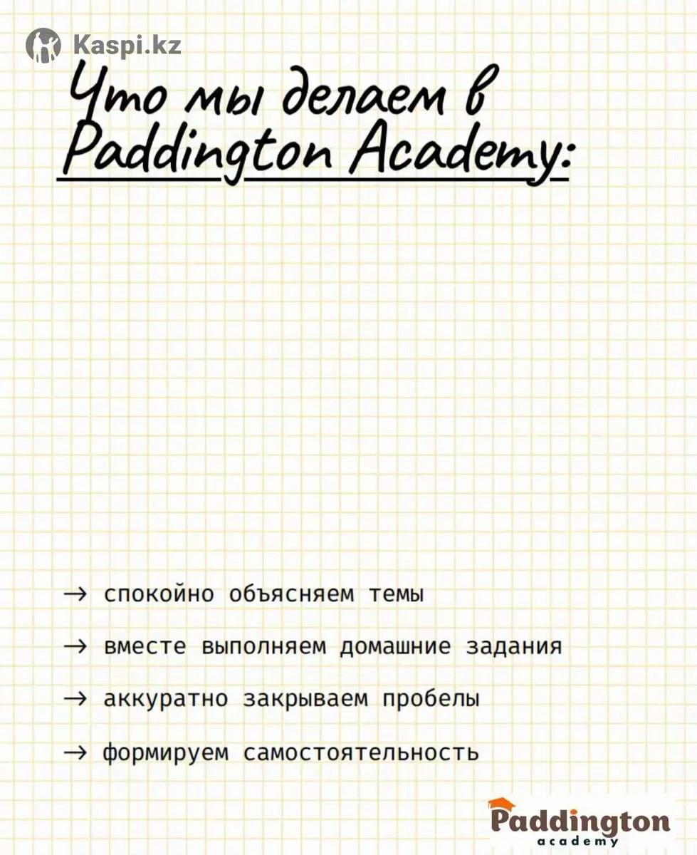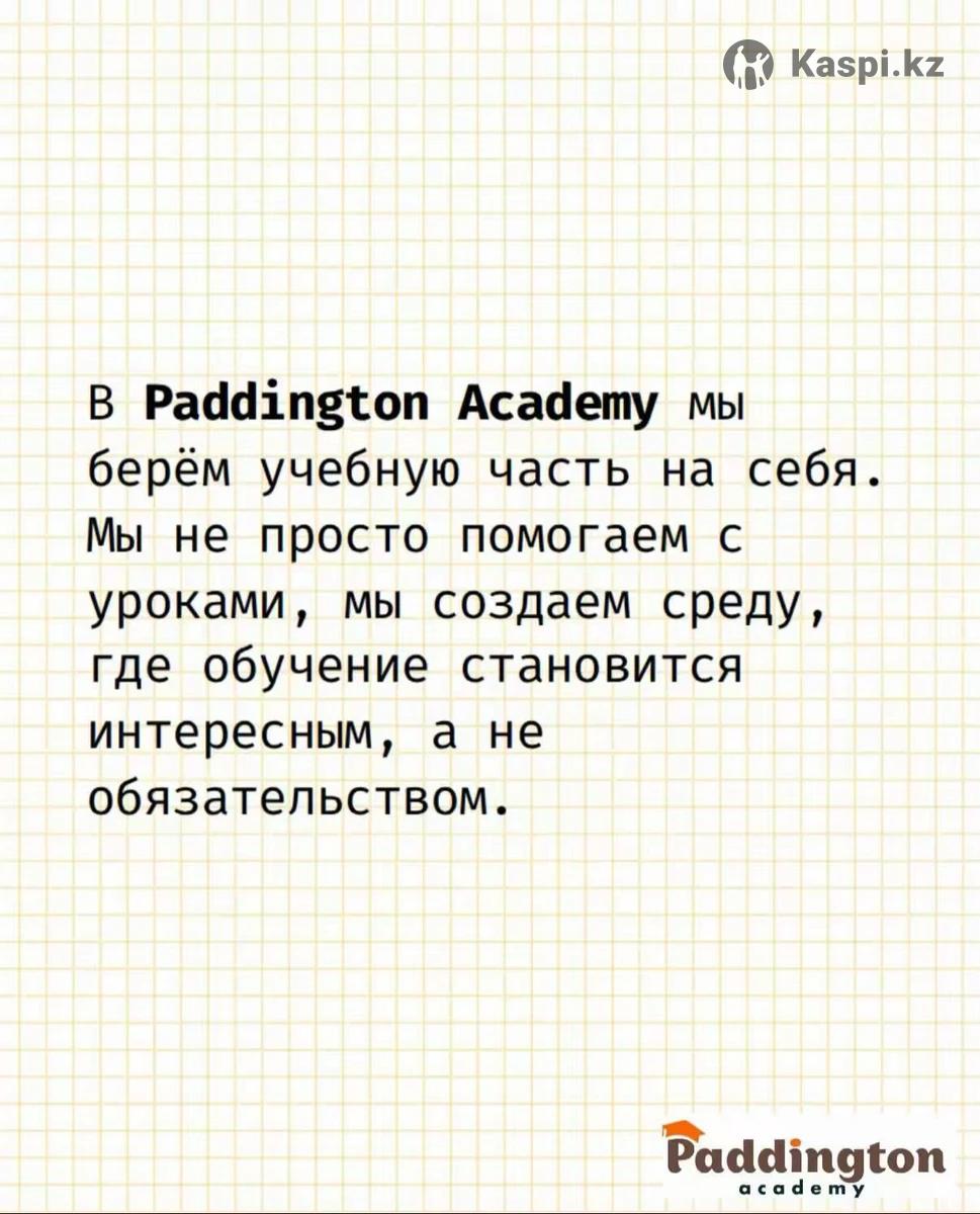 🎓 Paddington Academy — продленный день нового уровня Приглашаем учеников 1–4 классов в академические группы продленного дня и на индивидуальное сопровождение. Мы создаем среду, где ребенок не просто выполняет домашние задания, а формирует прочную академическую базу и уверенность в своих знаниях. 👩🏫 С детьми работают квалифицированные педагоги начальных классов с большим профессиональным опытом. Индивидуальный подход, системность и внимание к деталям — основа нашей работы. 📘 В программе: • глубокое и понятное объяснение школьных тем • контроль и качественное выполнение домашних заданий • целенаправленная подготовка к СОР и СОЧ • устранение пробелов и усиление сильных сторон • развитие самостоятельности и учебной дисциплины 🕘 Формат занятий (малые группы): • 09:00–11:00 • 13:00–15:00 • 14:00–16:00 Также доступны индивидуальные занятия и занятия в паре — в удобные для семьи дни.