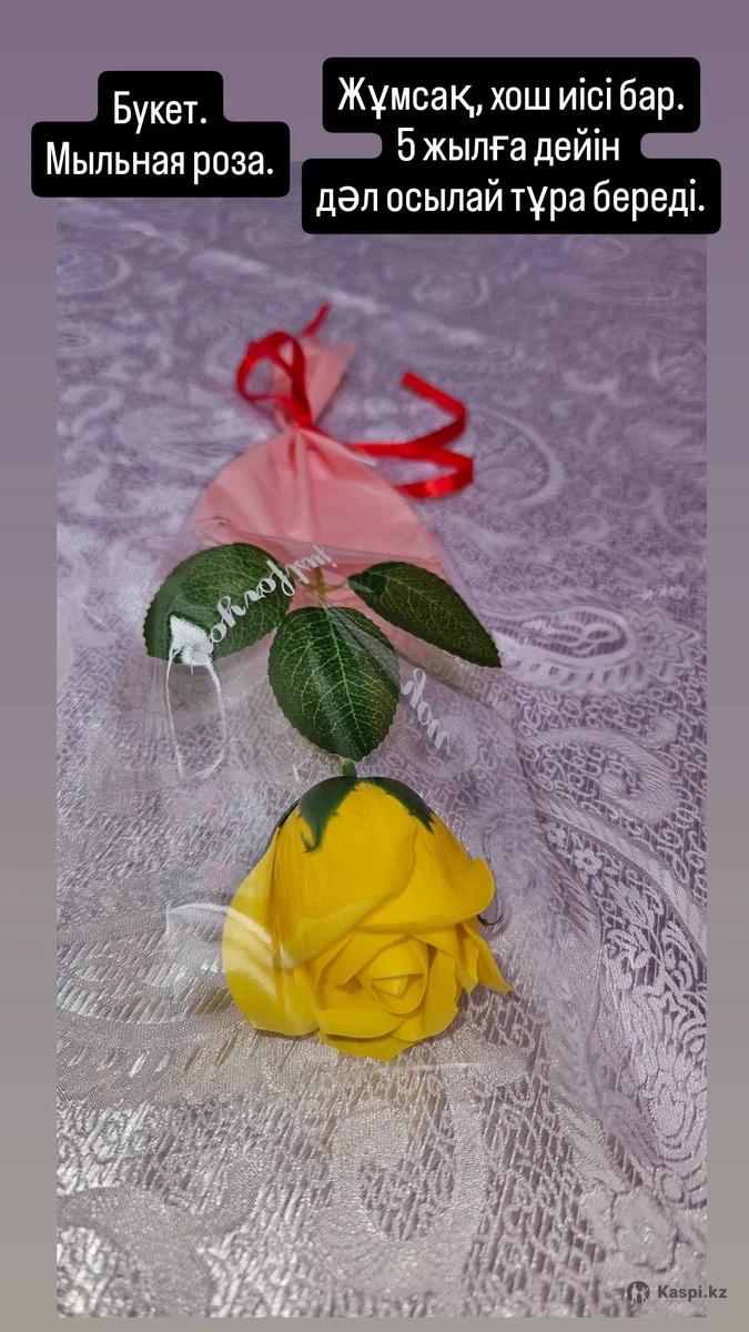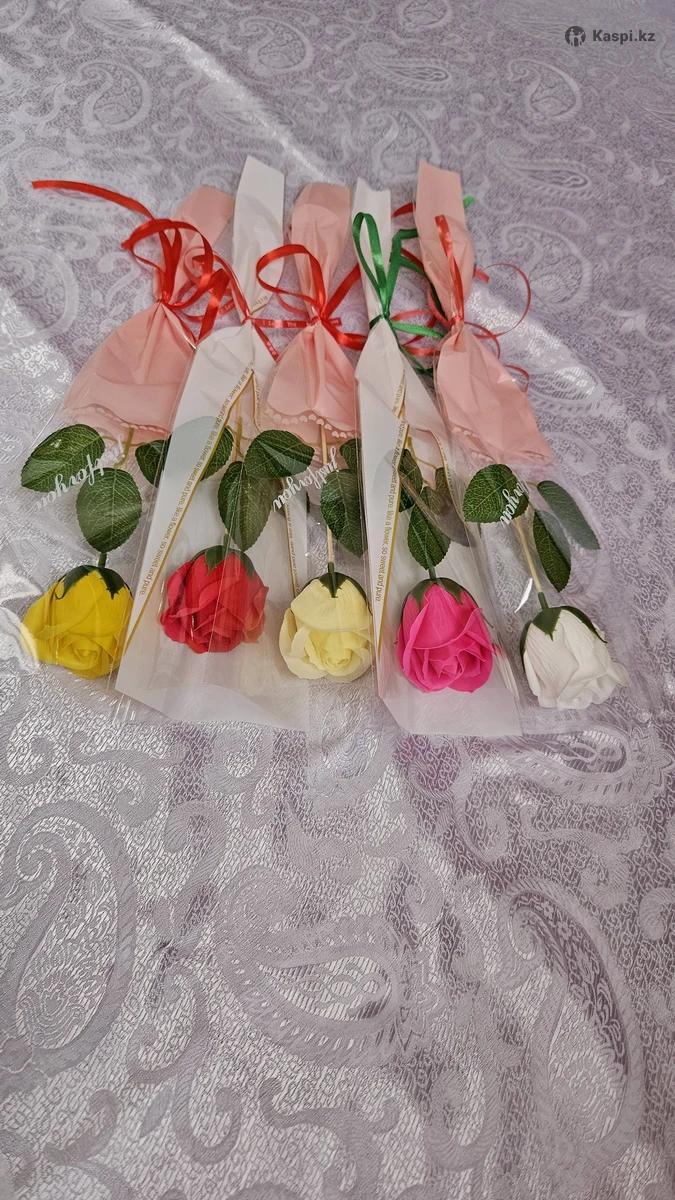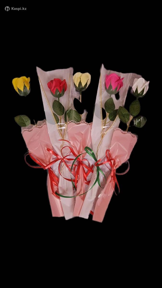 Кез - келген мерекеге арналған атлас лентадан жасалған және 5 жылға дейін өзгермей, тұра беретін хош иісті, сабын гүлдерден жасалған гүл шоқтары бар.