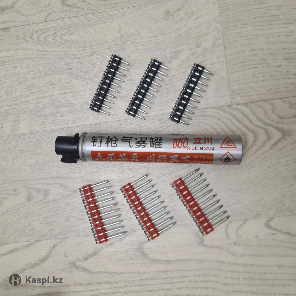 В пачке 1000 гвоздей. Гвозди с газом для монтажного газового пистолета. Каждая пачка укомплектованна одним газовым баллоном. Гвозди усиленные 3мм, длина от 19 до 38 мм 19мм - 3800 тг 22мм - 3900 тг 25мм - 4400 тг 27мм - 4600 тг 38мм - 5000 тг