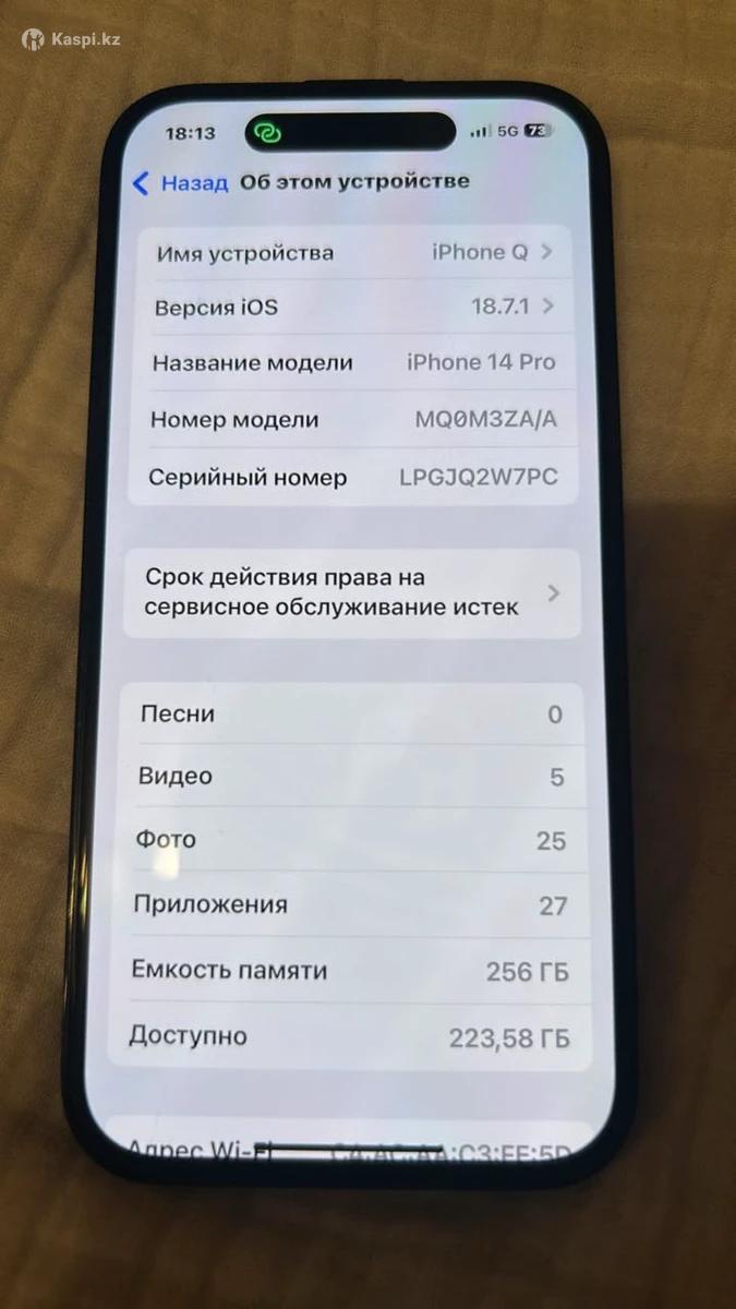 14 pro 256гб память АКБ 86% ремонт болмаған жағдайы өте жаксы ешқандай минус жок прям идеял полная комплектация.есть торг коробка бар любой проверка