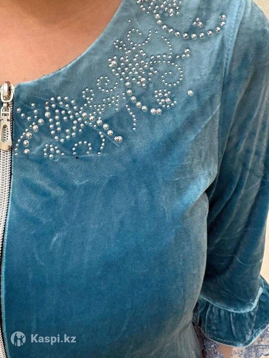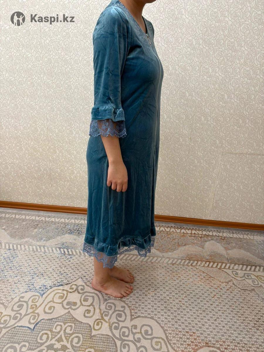 Халат велюровый бирюзового цвета.