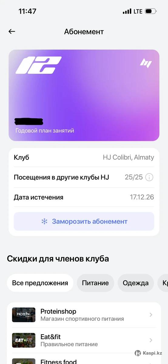 Продам годовой абонемент в тренажерный зал Hero’s Journey Colibri. Абонемент активен до 17.12.2026. Все заморозки, гостевые сохранены. Продаю в связи с переездом. Переоформление за мной.