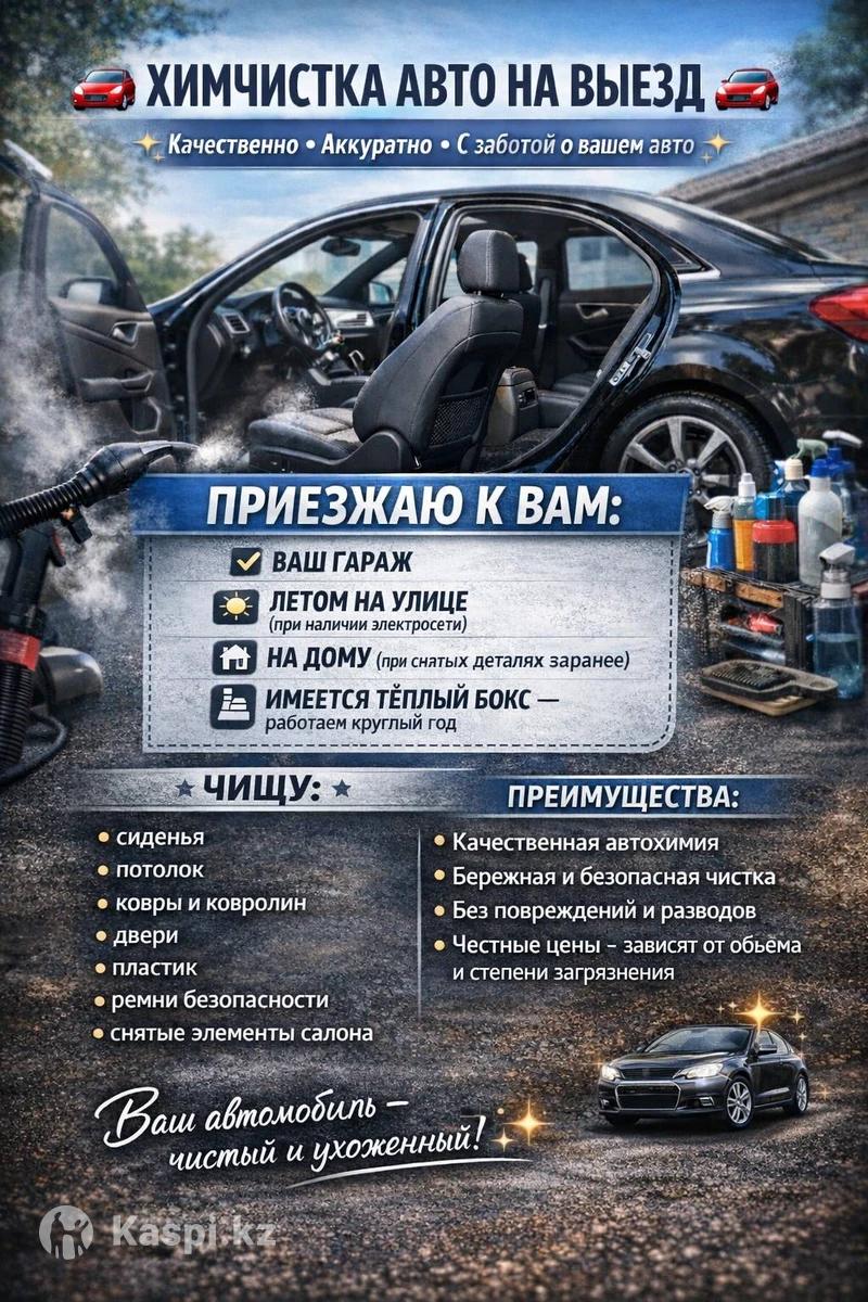 Химчистка салона авто и домашней мебели Профессиональная химчистка салонов автомобилей и мягкой мебели помогает вернуть чистоту, свежесть и ухоженный вид без повреждения материалов. Мы эффективно удаляет пятна, пыль, аллергены и неприятные запахи даже из глубины обивки. Используем специализированное оборудование и безопасные чистящие средства, подходящие для ткани, кожи, велюра, алькантары и экокожи. Каждая поверхность обрабатывается индивидуально с учетом степени загрязнения и типа материала. Мы выполняем: химчистку салона автомобиля (сиденья, потолок, ковры, панели) чистку диванов, кресел, матрасов, стульев удаление сложных пятен (еда, напитки, шерсть, запахи) антибактериальную и освежающую обработку Преимущества: безопасно для людей и животных без разводов и повреждений быстрое высыхание заметный результат с первого раза Чистота, которую видно и чувствуется — для вашего авто и дома.