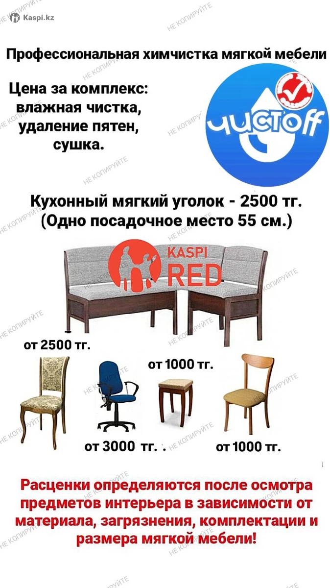 🔵 Химчистка мягкой мебели и матрасов с выездом на дом. 🔵 Удаление сложных пятен с мягкой мебели и матрасов. 🔵 Удаление неприятных запахов с мягкой мебели и матрасов. 🔵 Сушка мягкой мебели и матрасов после химчистки. 🔵 11 лет опыт работы. 🔴KASPI RED 💳 🟢Запсь, консультация,прайс пишите