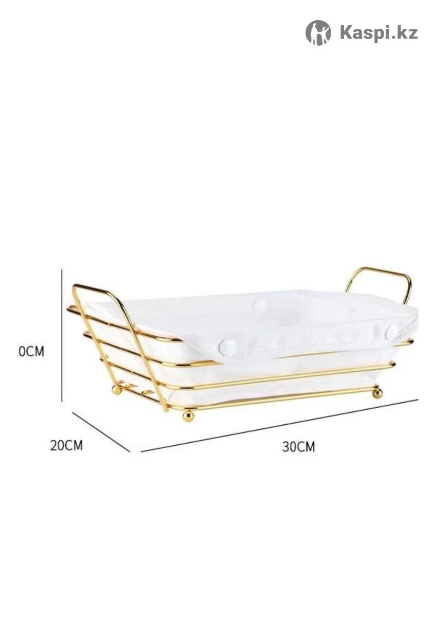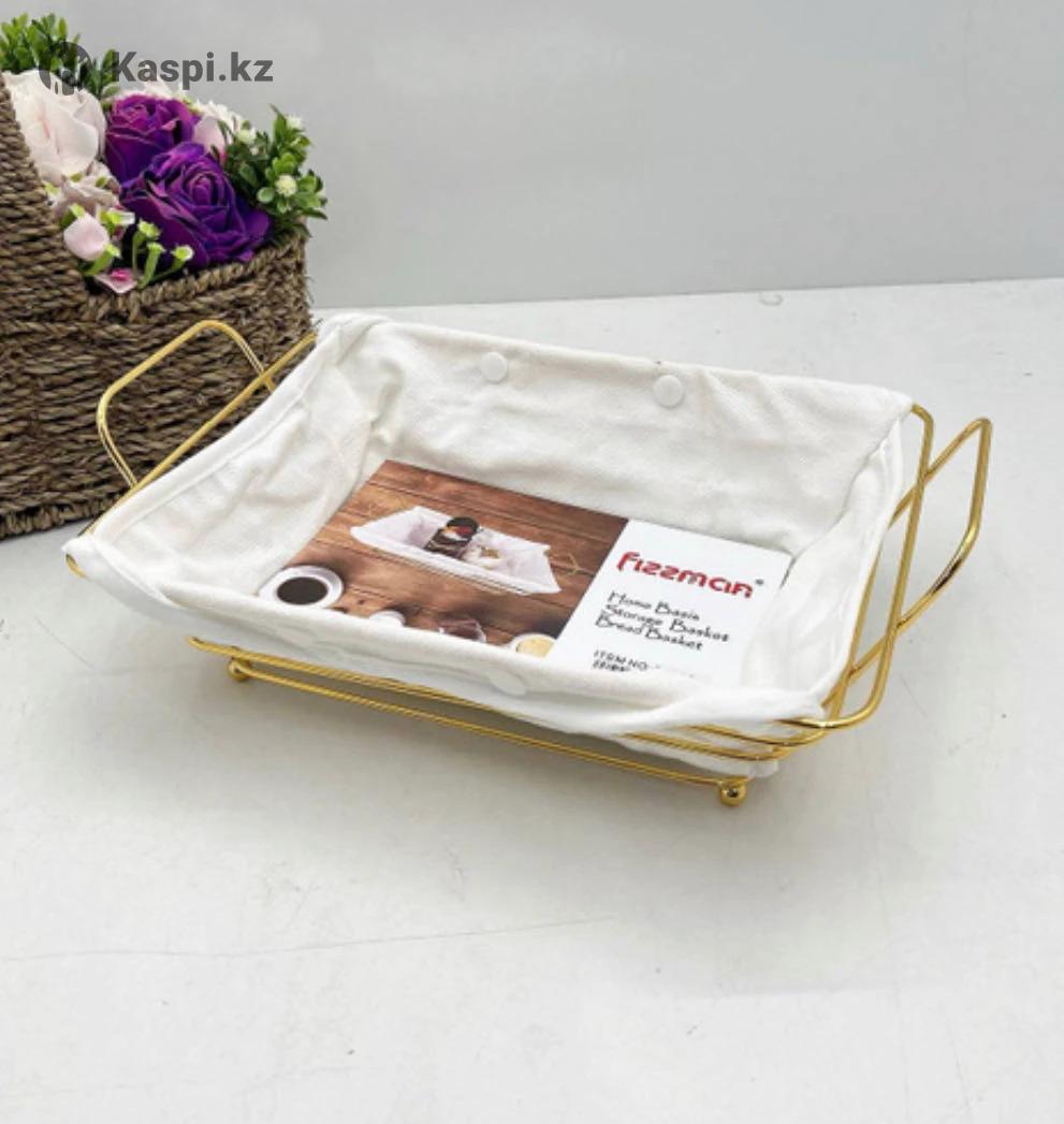 Хлебница металлическая с чехлом от. FISSMAN – стильное и практичное решение .Наша хлебница – идеальный выбор! Почему стоит выбрать нашу эстетичную хлебницу? Элегантный дизайн – цвет золота металлической корзины отлично сочетается с белым цветом хлопкового съемного чехла. Долговечность – металлическая хлебница прочная, гигиеничная и легко моется. Универсальность – подходит не только для хранения хлеба, но и как корзина для фруктов, овощей или даже для сладостей. Компактность – удобная хлебница на стол для подачи не займет много места и станет стильным акцентом на вашей кухне. Корзинка для хлеба с ручками – идеальная замена пластиковым контейнерам! Металлическая корзина – смотрится шикарно отлично впишется в сервировку праздничного стола. Подарите своему дому уют и порядок с нашей корзинкой для хлеба и фруктов!. Цена в розницу 1500 тг Оптом 1 коробка (24 шт) 750 тг .