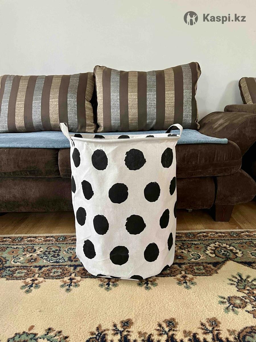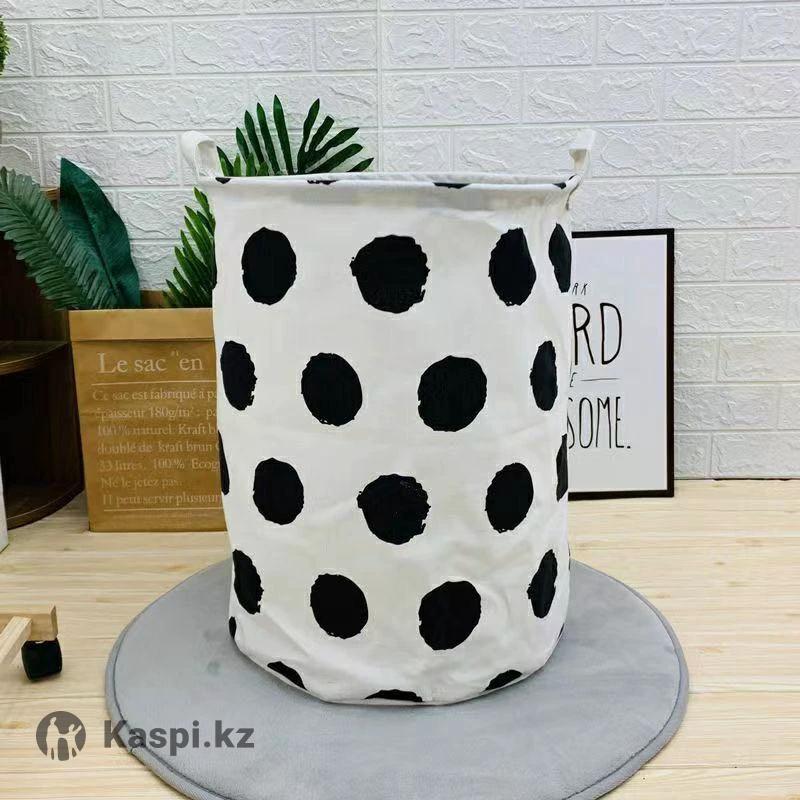 Корзина в черный горох. Легкая, складная, с ручками, хорошо держит форму. Подходит для игрушек, белья и хранения. Алматы, самовывоз/доставка. Цена: 1990 тг.