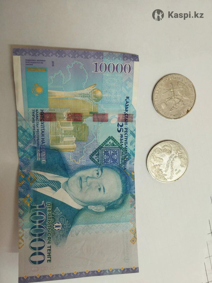 Монета 2012 года Станция Мир. Монета 2013 года Бауырсак Колобок, банкнота 10000 тенге с Нурсултаном Назарбаевым