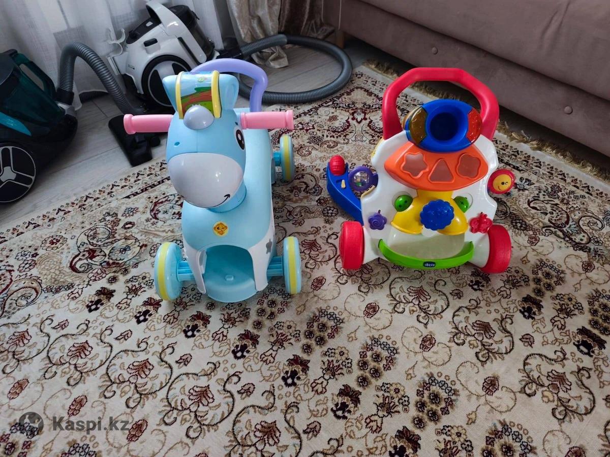 Продам комплект детских товаров ходунки Каталка Chicco сопровождение с музыкой всё работает, Каталка толокар Пони в отличном состояние музыка играет рабочая. Цена 8000 тг общий всё в одни руки