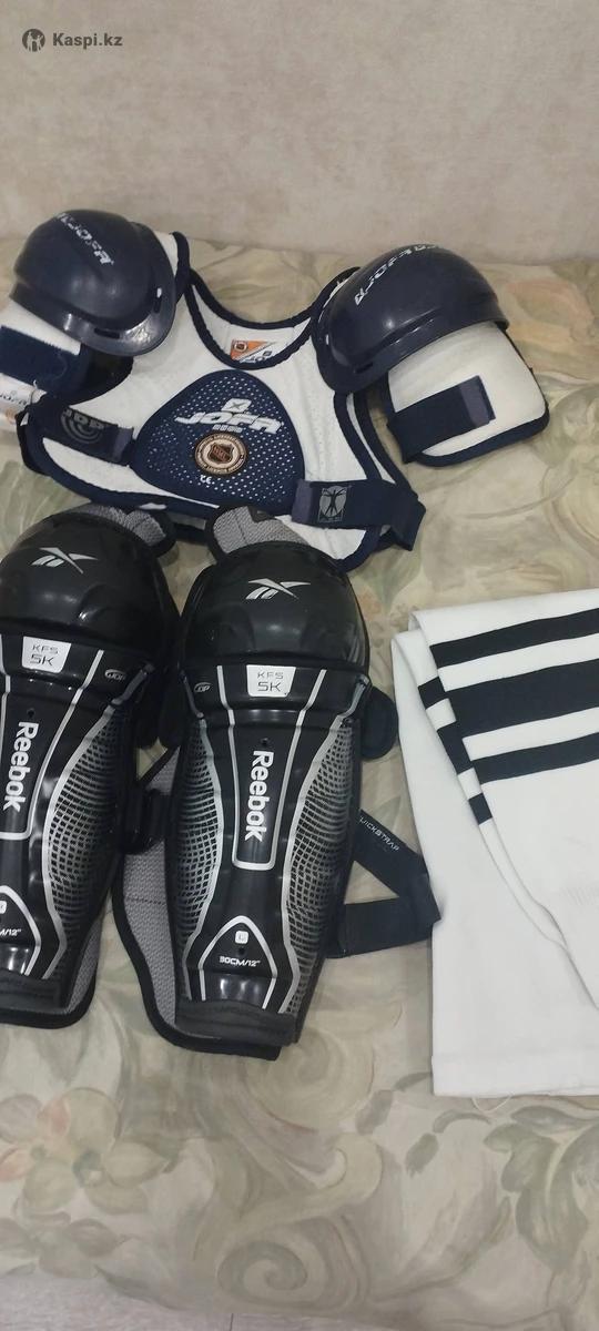 Продам хоккейные щитки Reebok в очень хорошем состоянии. Плюс нагрудник и гольфы. Размер щитков видно на фото