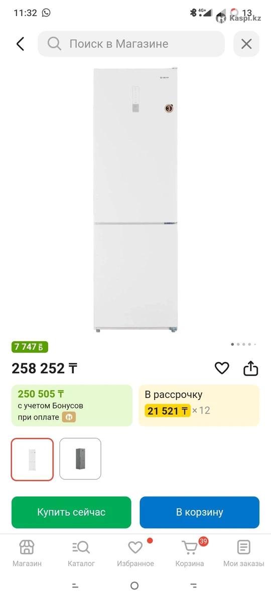Новый холодильник высота 188,сенсорное управление,в упаковке на каспие стоит 258000 продаю за 200000