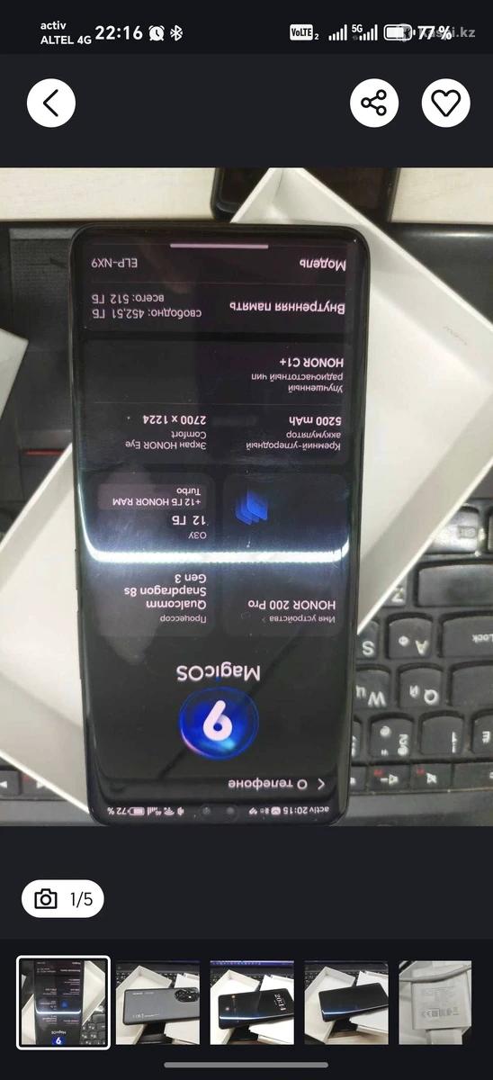 Продается Honor 200 Pro в идеальном состоянии (почти как новый). Модель: 12 ГБ оперативной памяти + 512 ГБ внутренней — хватает пространства под фото, видео и приложения. Поченьу стоит купить именно этот телефон: Ультракачественная камера — три модуля по 50 Мп, включая большой сенсор 1/1,3″ и OIS. Кинематографические портреты благодаря режиму Harcourt, свету и теням. Яркий и большой экран — 6,78″ AMOLED, 120 Гц, хорошо читается даже на солнце. Производительный процессор — Snapdragon 8s Gen 3, отлично тянет игры, приложения и многозадачность. Батарея 5200 мА·ч + быстрая проводная зарядка 100 Вт, беспроводная – 66 Вт — держит заряд и заряжается молниеносно. Элегантный и тонкий дизайн, вдохновлен природой — задняя панель с волнообразным узором. Удобная система защиты зрения — экран сертифицирован TÜV, минимальное мерцание. Устройство поддерживает 5G, есть NFC, двойной SIM (nano-SIM + eSIM). Состояние: Использовался очень аккуратно, без царапин, трещин или “битых” пикселей. Всегда в защитном чехле + стекло защитное/пленка (если есть) — можно передать вместе. В комплекте: оригинальная зарядка, кабель, коробка. чехол (бампер), чехол-книжка ОБМЕН НЕ ПРЕДЛАГАЙТЕ, только продажа