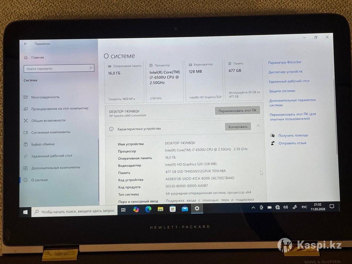 Продам ноутбук HP x360 (трансформер) в отличном состоянии. Экран поворачивается на 360°. Лёгкий, тонкий и удобный для работы, учёбы и поездок. Характеристики: • Процессор: Intel Core i7-6500U • Оперативная память: 16 GB • Быстрый SSD 512 GB • Поворот экрана на 360° • Встроенная графика Intel HD • Windows 10 Pro установлен Ноутбук работает быстро и стабильно. Отлично подходит для: — работы — учебы — интернета и фильмов — офисных программ — поездок и командировок Состояние хорошее. Цена: 135 000 тг Небольшой разумный торг. Можно проверить при встрече.