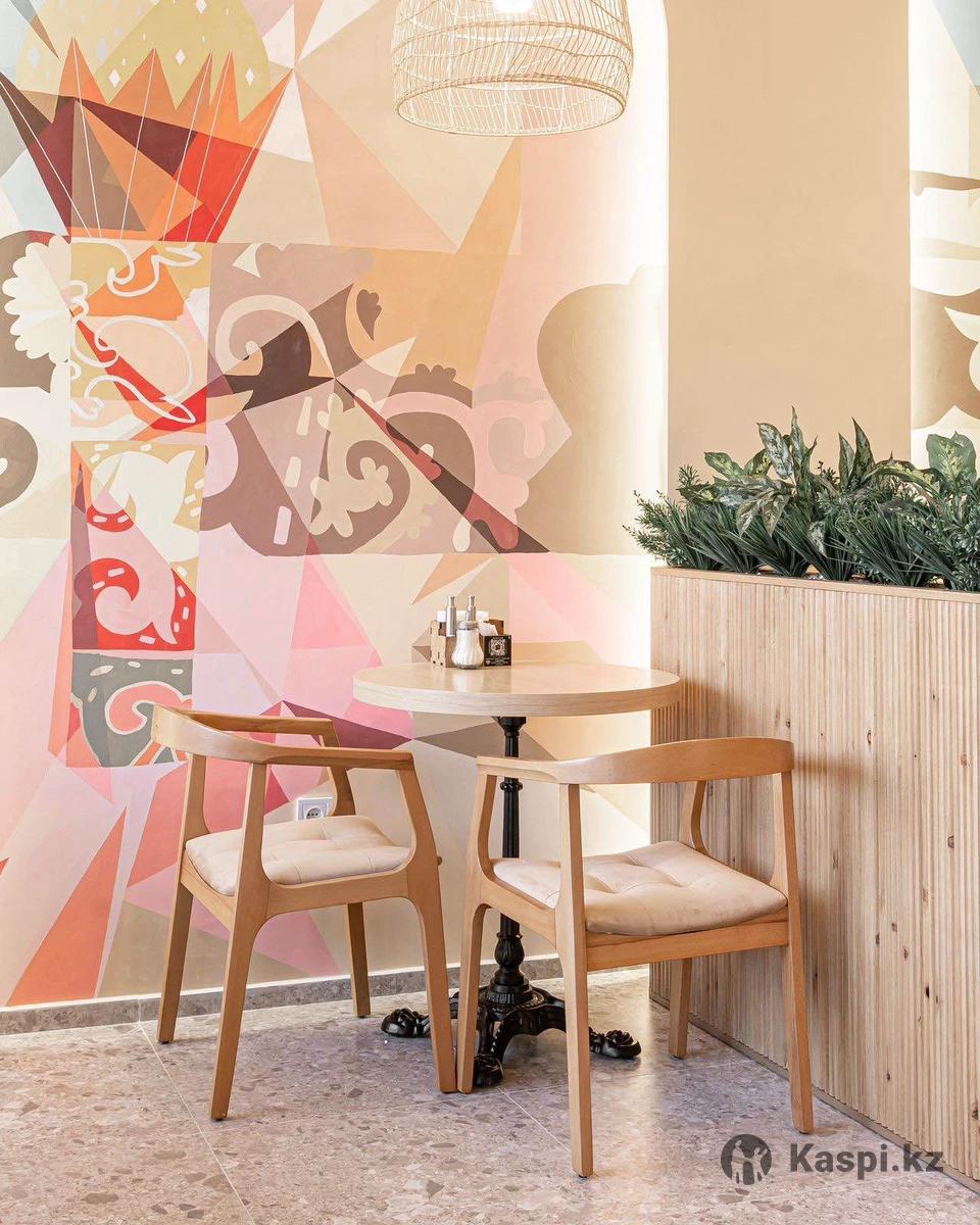 Наши работы помогают: — сделать пространство узнаваемым и «инстаграмным» — усилить атмосферу бренда — привлекать внимание гостей и повышать визуальную ценность интерьера без капитального ремонта Мы работаем под концепцию заведения, учитываем фирменный стиль и задачи бизнеса. Берем на себя весь процесс — от идеи и эскиза до аккуратной реализации в срок. Среди наших проектов — сотрудничество с Hilton, сетью Coffee Boom, «Вечное небо», аэропорт, а также школами в Астане. Будем рады предложить вам несколько идей росписи именно для вашего пространства. Если формат откликается, можем направить примеры работ и обсудить детали.