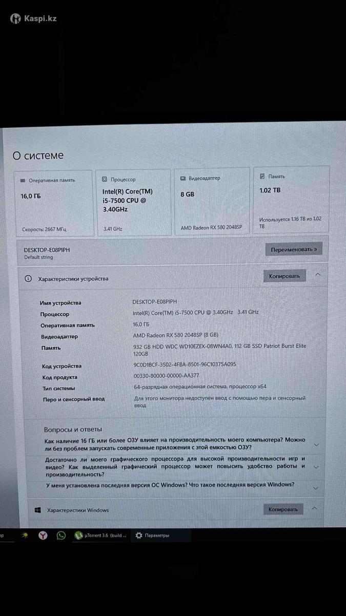 Продам компьютер в сборе Системный блок Клавиатура И Мышь без проводов Коврик (большой) WiFi адаптер Монитор 27 дюймов Компьютер почти новый