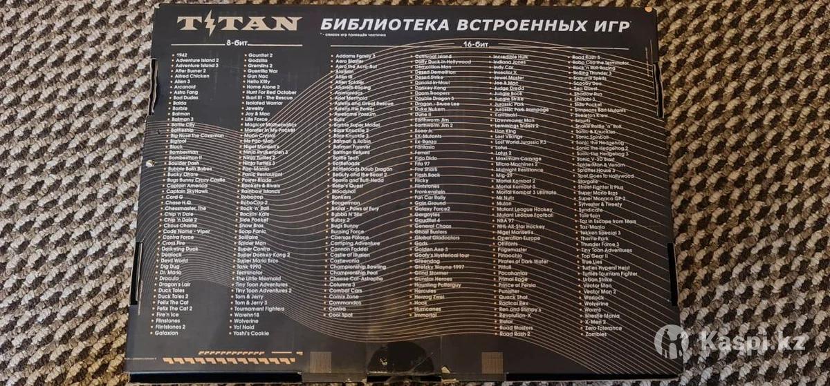ДЕТИ 90-х и 2000 годов, если хотите понастольгировать с любимыми играми денди и сега, то это идеальная приставка для вас! Игровая приставка Titan. Вмещает в себя 500 встроенных игр. 8 - бит 200 игр. 16 - бит 300 игр. В комплекте идет сама консоль, блок питания, 2 джойстика, Аудиовидео кабель. Имеется коробка от нее, но коробка не в самом лучшем состоянии. Кнопки на джойстиках не залипают, работает все просто отлично.