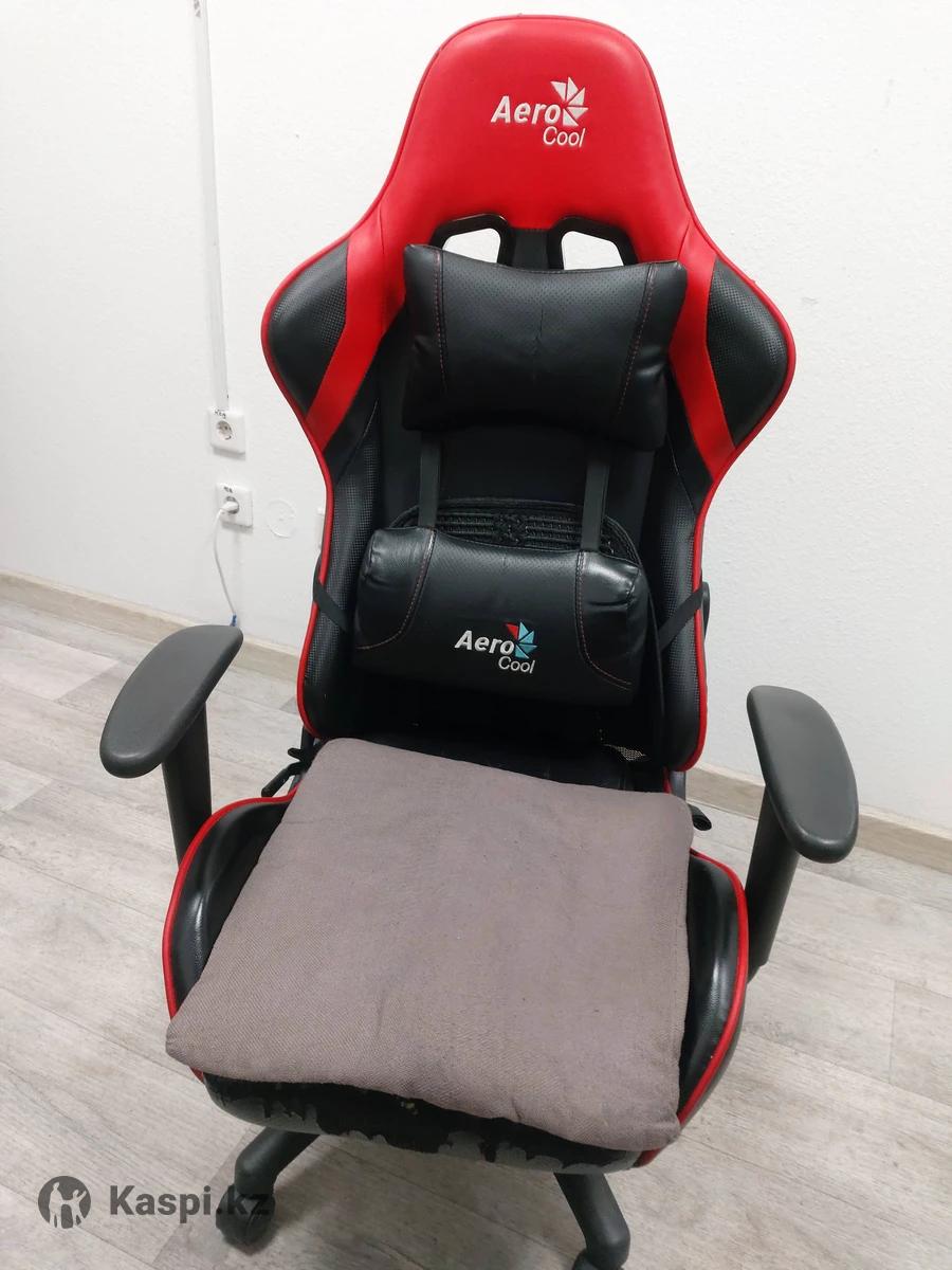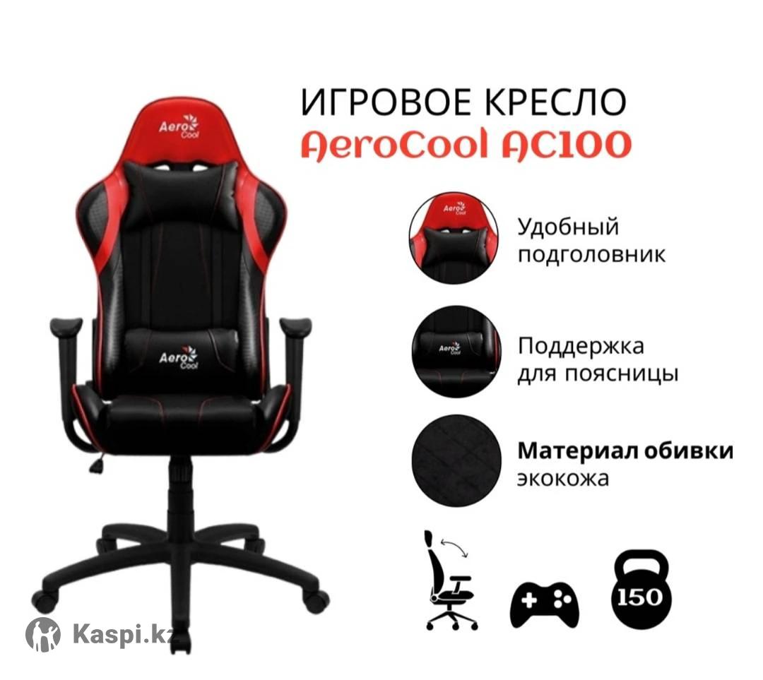 Игровое кресло Aerocool AC100 AIR в черно-красном цвете. Дизайн и материалы: Кресло имеет спортивный дизайн с черно-красной обивкой. На спинке и поясничной подушке виден логотип "Aero Cool". Особенности конструкции: Кресло оснащено газовым подъемником 3-го класса и прочной стальной рамой, способной выдерживать нагрузку до 125–150 кг. Эргономика: Для дополнительного комфорта в комплект входят съемные подушки для поддержки головы и поясницы. На сиденье лежит дополнительная серая подушка. Мобильность: Кресло оснащено прочным нейлоновым основанием и 50-миллиметровыми роликами для легкого перемещения.