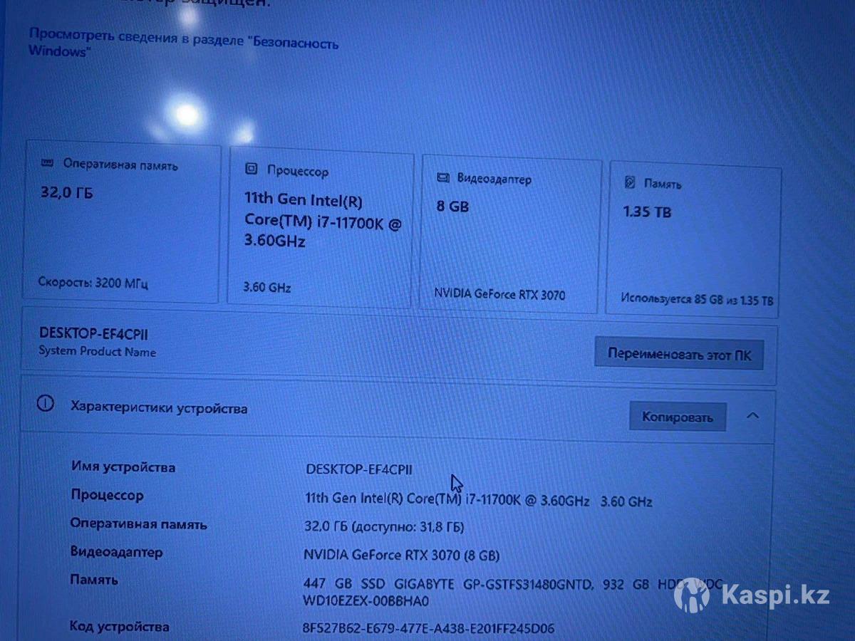 Игровой компьютер | RTX 3070 | i7-11700K | 32GB RAM Продаю мощный игровой ПК в идеальном состоянии. Без минусов — не греется, не шумит, работает стабильно. Подойдет для любых современных игр и тяжелых задач. Характеристики: •Видеокарта: RTX 3070 8GB •Процессор: Intel Core i7-11700K •Материнская плата: ASUS TUF Gaming •ОЗУ: 32GB RAM •Накопители: SSD 500GB + HDD 1TB Торг, доставка есть