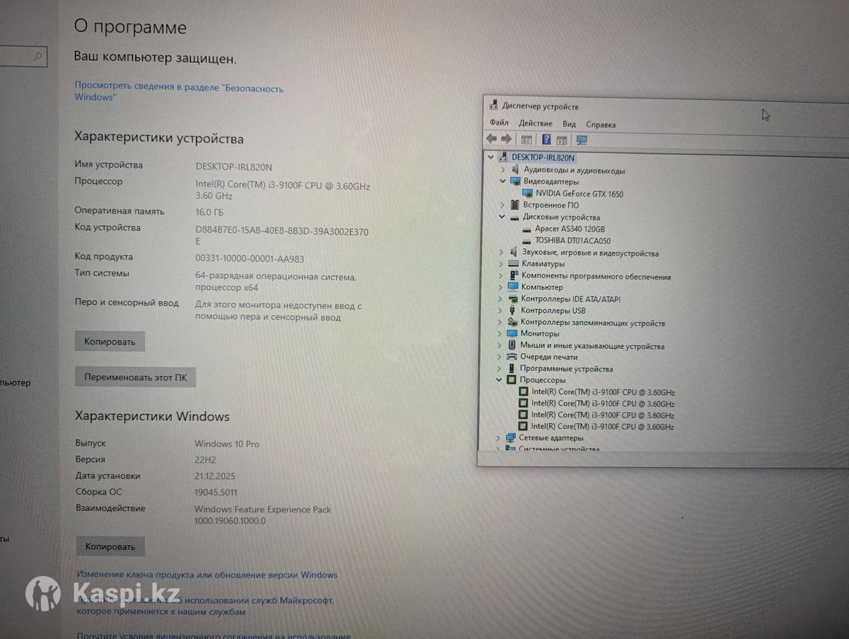 Продам игровой ПК с монитором , состояние отличное , температуры низкие Коробки от монитора и системного блока имеются , в использовании был не долго Спокойно тянет большинство игр , тесты можете посмотреть в ютубе Характеристики ПК; 1) Процессор - Intel Core i3 9100F 4.2 Ghz 4-х Ядерный 2) Кулер на процессоре - Alta 9 3) Материнская Плата - Gigabyte H310M S2 2.0 4) Оперативная Память - DDR4 8gb 2400Mhz 5) Видеокарта - Gigabyte GTX 1650 4Gb | GDDR5 6) SSD - Apacer 120Gb 7) Жесткий Диск - Toshiba 500Gb 8) Корпус - Delux DLC-DW701, Black 9) Блок Питания - 450W 10) Операционная Система - Windows 10 Pro 11) Монитор Безрамочный Philips 22 дюйма Full HD / 75 Ghz Установленные игры : GTA 5 / FIFA 23 / Far Cry 5 / Mafia 2 / Sniper Elite 2 / Batlfield 1 / Far Cry 3 и т.д Цена окончательная ! Обмен не интересует !