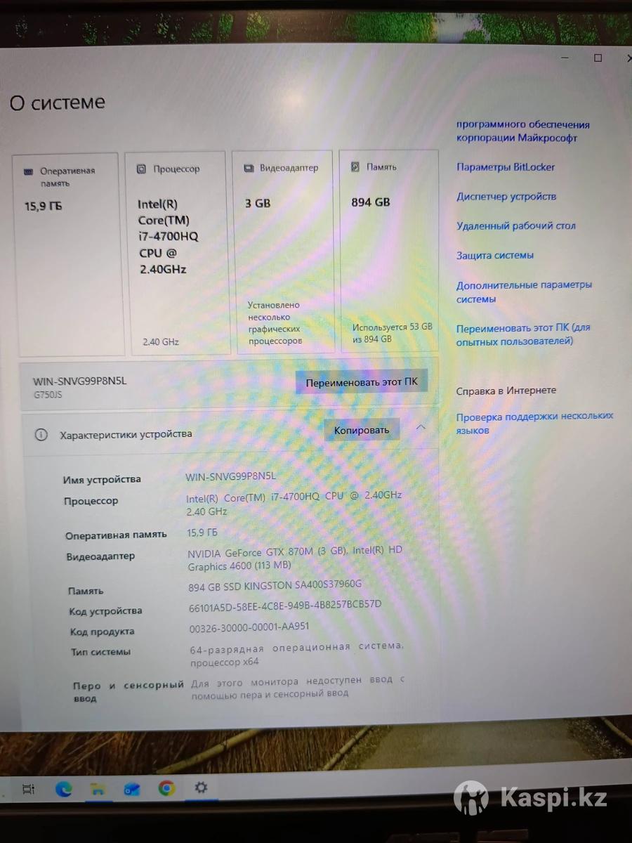 Продам игровой ноутбук ASUS G750JS версии ROG в отличном состоянии RAM 16 Gb Intel Core i7-4700HQ CPU 2.40 GHz SSD 894 Gb NVIDIA GeForce GTX 870M (3Gb) Экран 17.3 дюйма