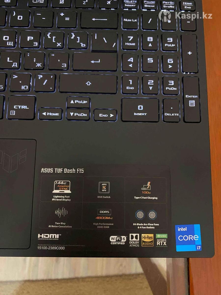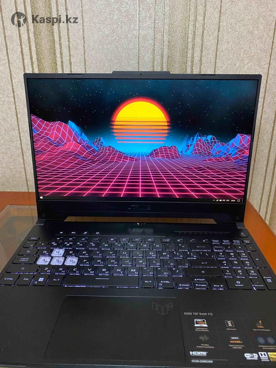 ASUS TUF Dash F15 (2022) — FX517ZM Состояние отличное, мощный и легкий игровой ноутбук. Характеристики: • 12 Gen Intel(R) Core i7-12650H 2.30GHz • RTX 3060 6GB • 16GB DDR5 • SSD 512GB NVMe • Экран 15.6” Full HD 144Hz • Подсветка клавиатуры • Вес 2 кг • Полный комплект оригинальное зарядное устройство, чехол, игровая мышка. Сохранил чек, коробку и все сопутствующее. Играми не нагружал, в основном использовался для работы и учебы. Цена: 390 000 тг Возможен минимальный торг